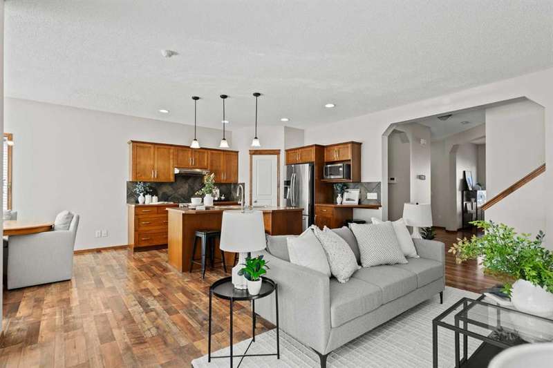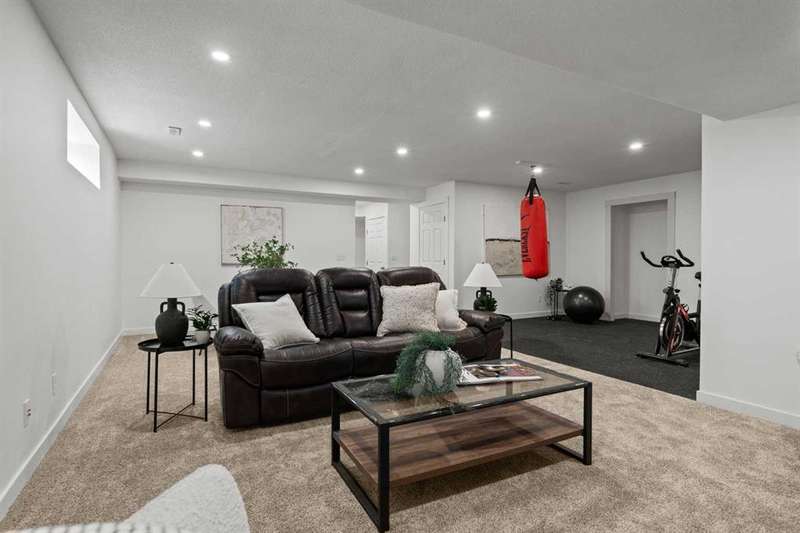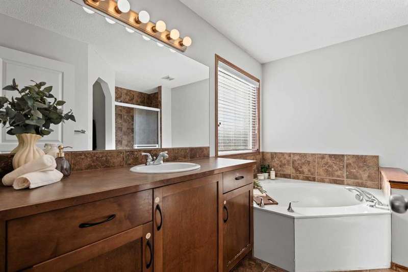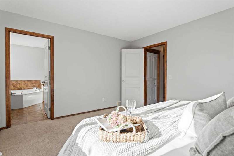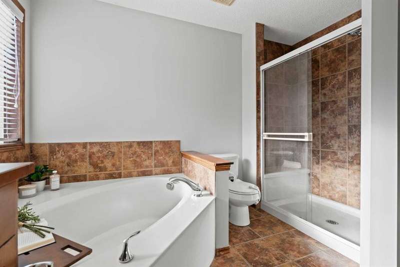 Welcome to this beautifully maintained 4-bedroom, 3.5-bathroom home located on a quiet street in McKenzie Towne. The main floor features a cozy wood burning fireplace, and a bright, functional layout that flows seamlessly through the living and dining spaces. Upstairs, you’ll find a spacious bonus room with a charming Juliette balcony, along with the primary suite that offers a relaxing retreat complete with a corner soaker tub, walk-in shower, and generous walk-in closet. The fully finished basement includes durable LVP flooring and soft to touch carpet with a raised subfloor system, in-floor heating in the guest ensuite bathroom, and a stand out media room, wired for surround sound plus a spacious gym area with rubber floor matting. Outside, enjoy a completely low-maintenance backyard with composite decking, a built-in hot tub, astro turf, and professional landscaping, all enclosed by a new fence. The 24x26 ft parking pad is ready for a future garage, offering added convenience and value. Major updates include furnace (2022), air conditioning (2022), and hot water tank in 2017, Fresh paint on the main and 2nd floor. This beautiful home is move-in ready and available for immediate possession—get settled before Christmas!