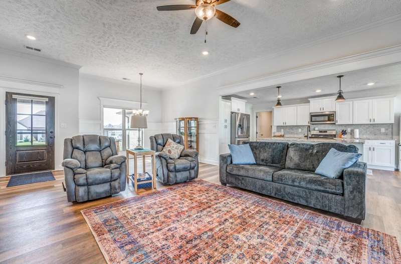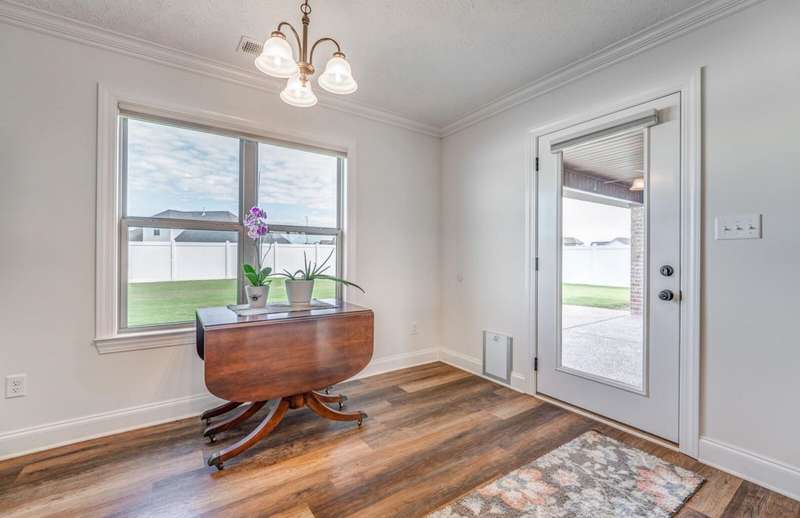 Stop scrolling- this is the one! This stunning 4 BR/ 3 B residence perfectly blends comfort and style. Step inside to find beautiful LVP flooring, white shaker cabinetry throughout, creating a bright and modern feel. Kitchen features granite countertops gas stove, & plenty of work space, while the gas fireplace sets the tone for relaxing evenings. Enjoy meals in the separate dining room or step outback to the covered patio with a concrete extension - ideal for entertaining outdoors. The 3 car garage includes an additional heated & cooled room perfect for extra storage. You will also find extra insulation in the alk-in attic along with an antenna for local channels. This home truly offers thoughtful details and flexible living at every turn. Frig & 3 tv's will remain.