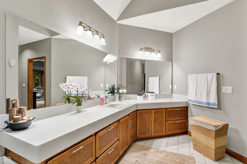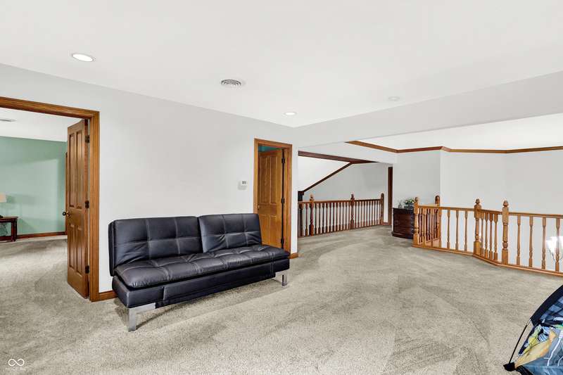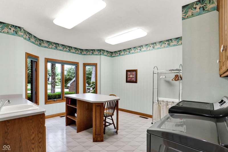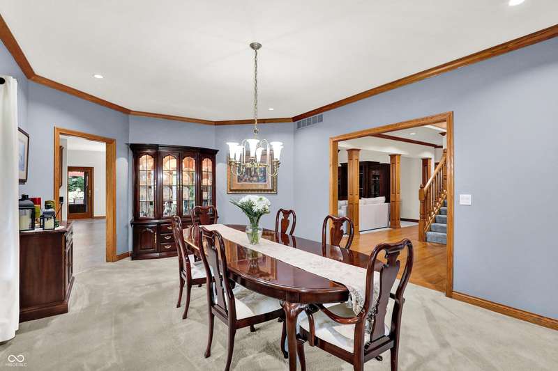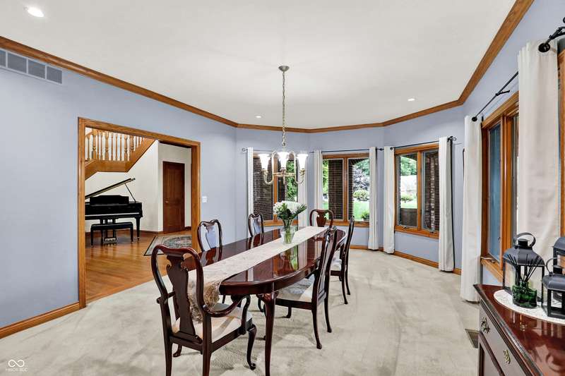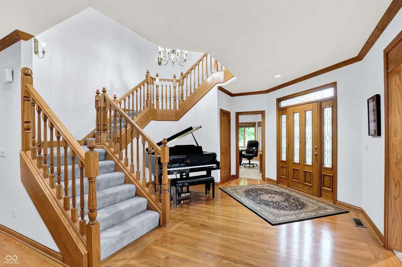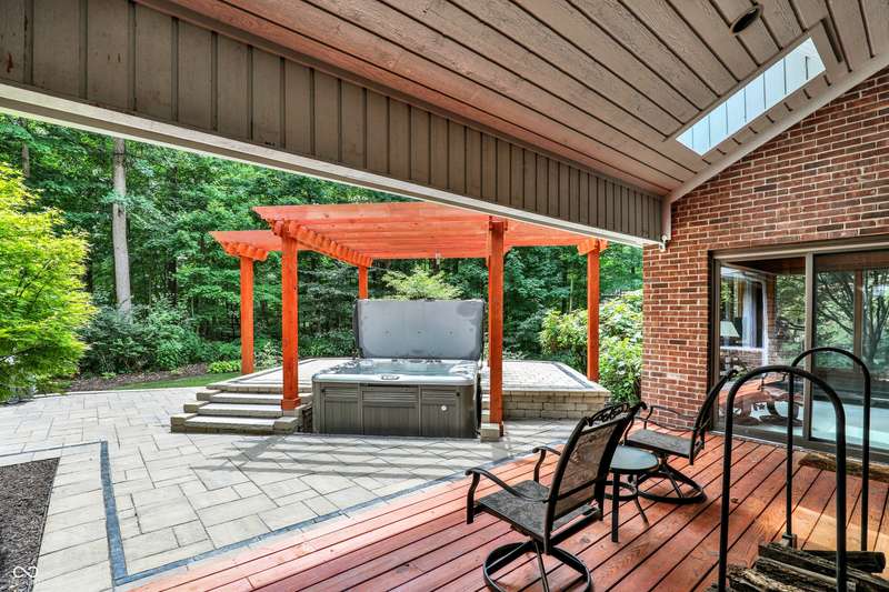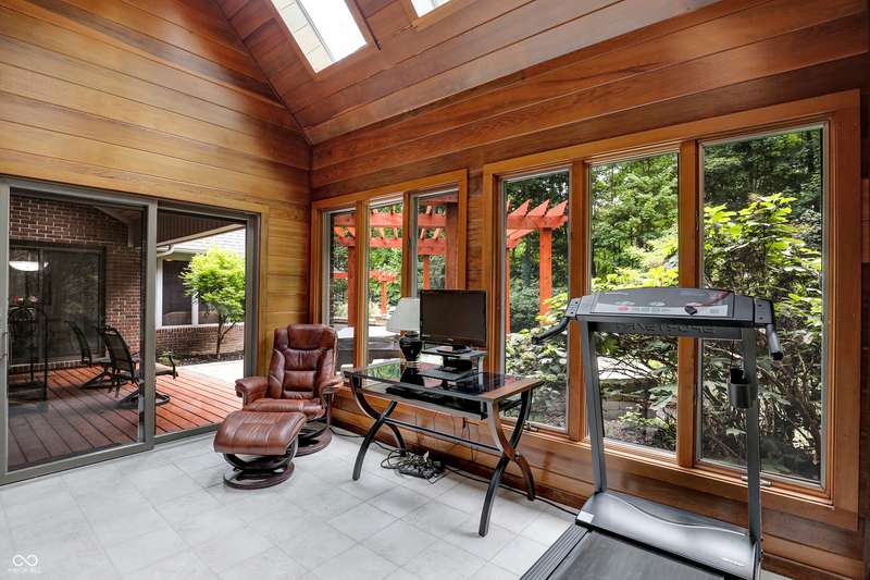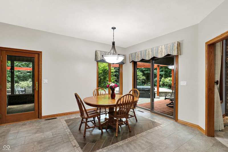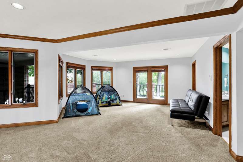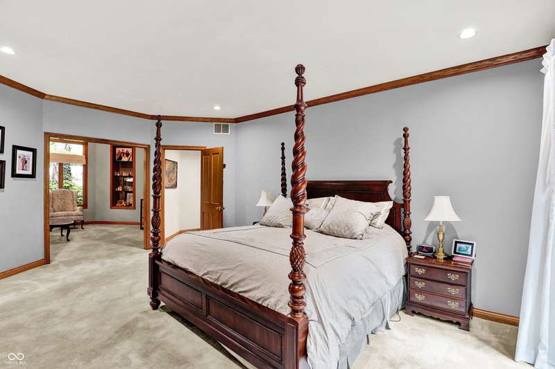This beautiful property is a special opportunity for those searching for their perfect place. It offers an ideal combination of location, appeal, quality, and functionality. Driving up the circular drive, you'll pass the pool house and arrive at this timeless full brick custom home, tucked away on 2.23 wooded acres. It features arched porches, a balcony overlooking the property, and beautifully landscaped gardens. The sidewalk leads to a functional front porch and a 20x15 entry that opens to the rest of this well-flowing home. The spacious yet cozy rooms include a great room with a soaring ceiling and a floor-to-ceiling stone fireplace. The formal dining room can accommodate the largest tables, while the custom kitchen offers plenty of character, space and charm. It shares space with a breakfast nook that provides views of the natural beauty of the private rear yard. The main floor master bedroom is a true suite, featuring an eye-catching sitting room and a private enclosed sun room. The en-suite bath includes a soaking tub, steam shower, attractive cabinetry, and a walk-in closet. Additionally, you'll find a 16x13 laundry room that can double as a sewing or craft room, along with a nicely trimmed office. Upstairs offers a large functional loft that separates two additional bedrooms and provides access to the balcony with the best views in the neighborhood. The finished basement offers 2 large entertaining areas, a 2 room exercise area along with 2 unfinished storage rooms. Outside is a nature lovers dream whether you're enjoying the rear patio space and hot tub or spending the hot summer days in the pool! The trees along the drive and the home are both nicely lit for a beautiful evening ambiance. All this within an easy commute to Downtown Indianapolis or into Hamilton County!