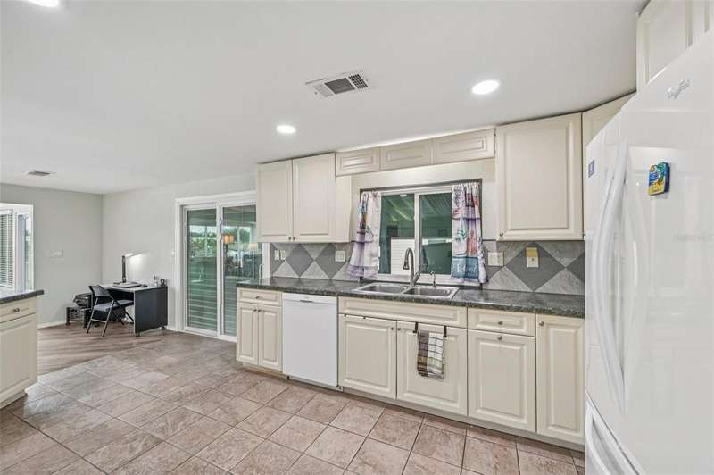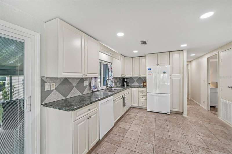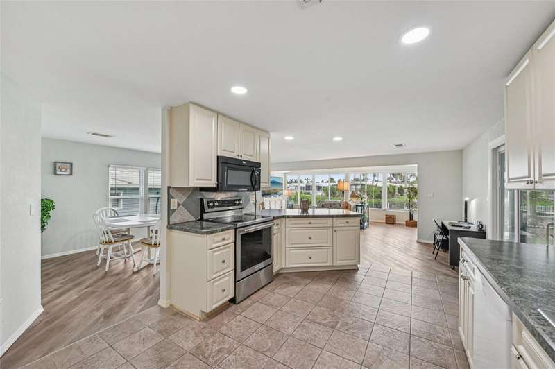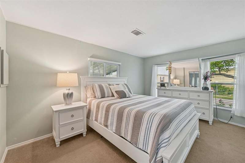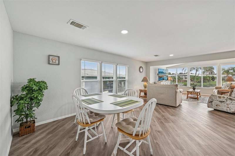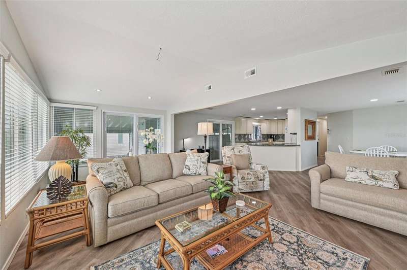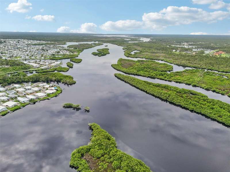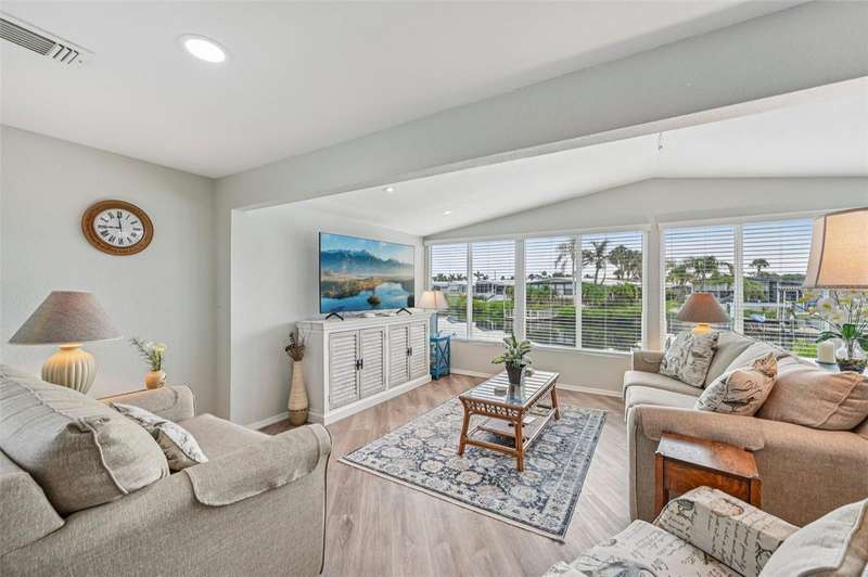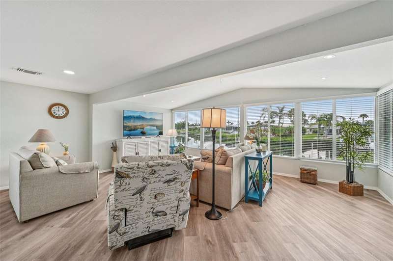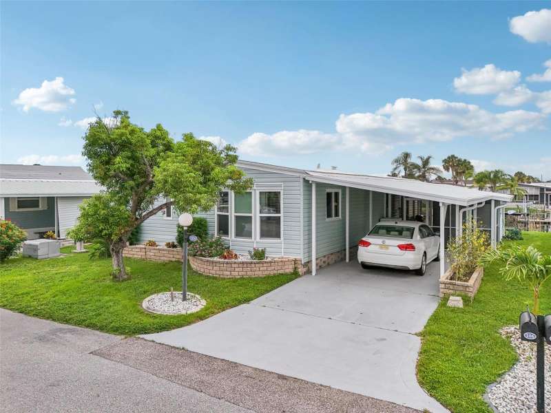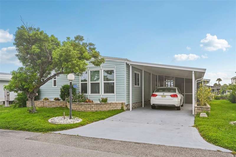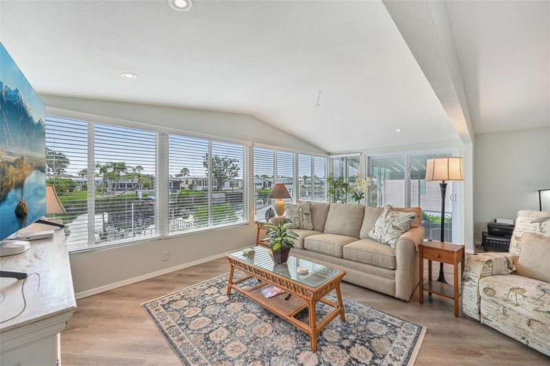 Welcome to this spacious 2 bedroom, 2 bathroom canal front manufactured home located in the sought-after boating community of Lazy River Village in North Port, Florida. Perfectly situated on the water with its own private dock, this home is being offered turnkey furnished and is located in the pet section of the community. It features an open floor plan ideal for both entertaining and everyday living. The remodeled kitchen flows seamlessly into the living area, where a long bank of windows frames beautiful canal views and fills the space with natural light. Vaulted ceilings add to the open, airy atmosphere, and new sliding doors lead to a screened-in lanai where you can relax and enjoy the tranquil water view. The primary suite includes a walk-in closet plus two additional closets for extra storage, while the guest bedroom also offers a walk-in closet and an updated vanity in the guest bath. Recent updates include new windows throughout, a new roof in 2023, a new carport in 2025, a 2019 AC system, and a hot water heater installed in 2023. Lazy River Village is a premier 55+ community known for its active lifestyle and beautiful waterfront setting. Residents enjoy access to a private marina, boat ramps, kayak launch, heated pool, tennis and pickleball courts, fitness center, and a wide range of social clubs and planned activities. With its friendly atmosphere and stunning natural surroundings, Lazy River Village is the perfect place to enjoy life on the water.