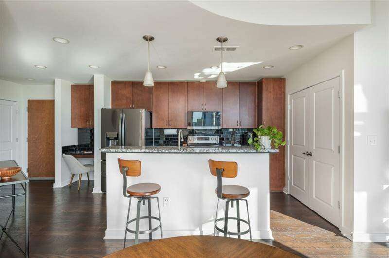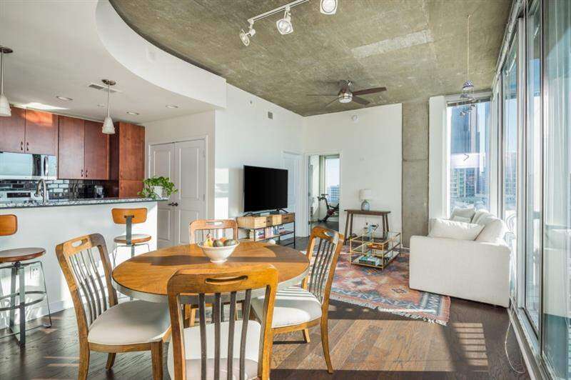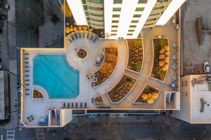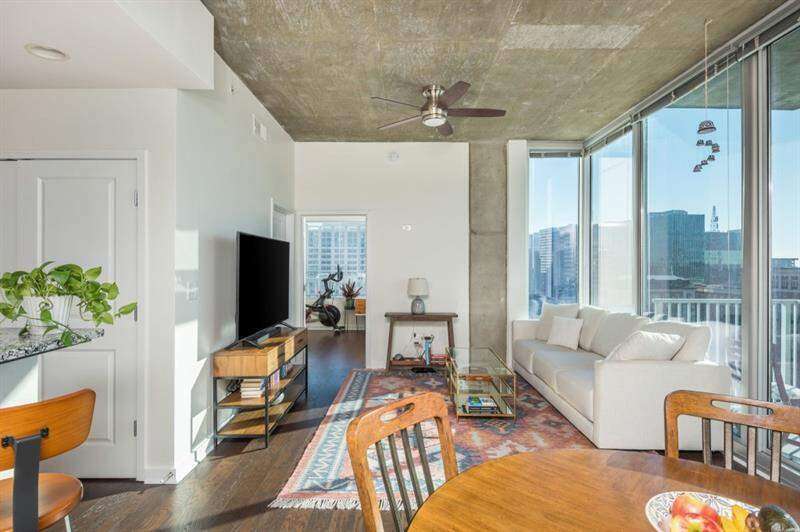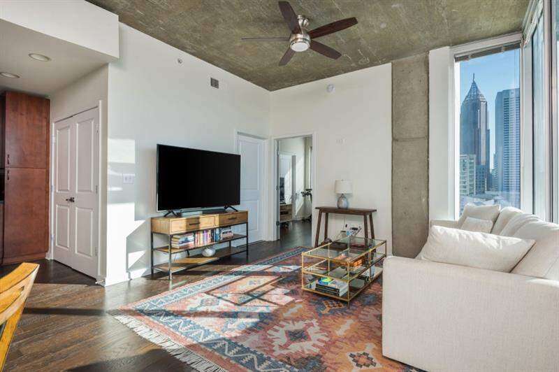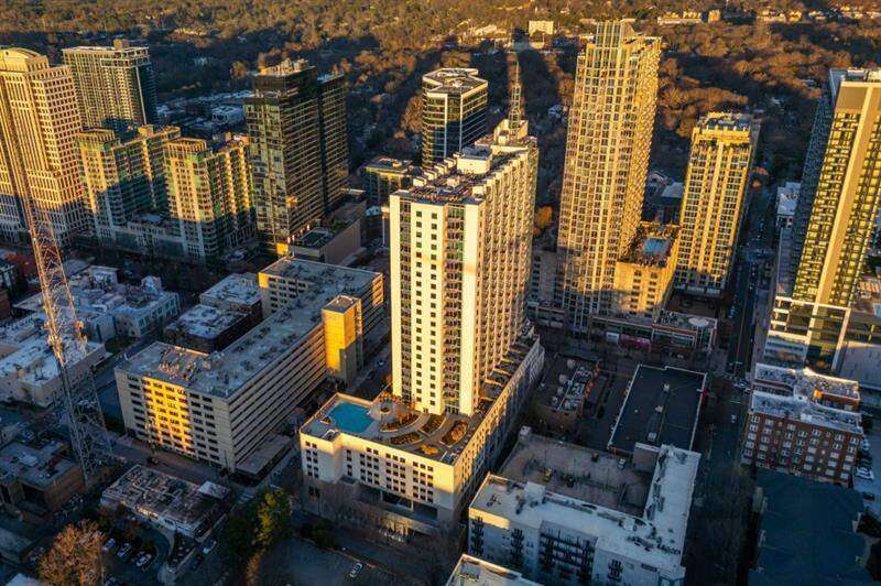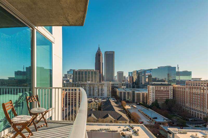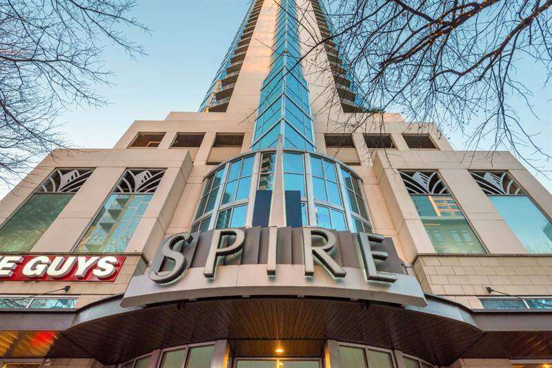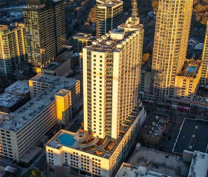Experience unparalleled urban luxury in this stunning corner unit on the 14th floor of the Spire building in Midtown. As one of Midtown's premier residential condominiums, this two-bedroom residence invites you to unwind and enjoy breathtaking sunsets over the west side of Atlanta from your own private balcony, offering amazing, sweeping city views. Take in iconic vistas of the Bank of America building and the historic Biltmore Hotel as you relax after a long day. Featuring expansive floor-to-ceiling windows, this home is flooded with natural light throughout, creating an airy and inviting atmosphere. The thoughtfully designed layout places the two bedrooms on opposite sides of the unit, ensuring maximum privacy. The centrally located kitchen, boasting brand new stainless steel appliances, overlooks the spacious dining and living areas, providing additional captivating views of the Midtown skyline - perfect for entertaining or everyday living. The Spire building offers an exceptional array of amenities designed for sophisticated city living, including a resort-style rooftop pool, a state-of-the-art fitness center, a versatile clubhouse, and 24-hour concierge service for ultimate convenience and security. Step outside and find yourself at the very heart of Midtown, with everything the vibrant neighborhood has to offer right at your doorstep, from world-class dining and entertainment to lush parks and cultural attractions. This is more than a home; it's a lifestyle.