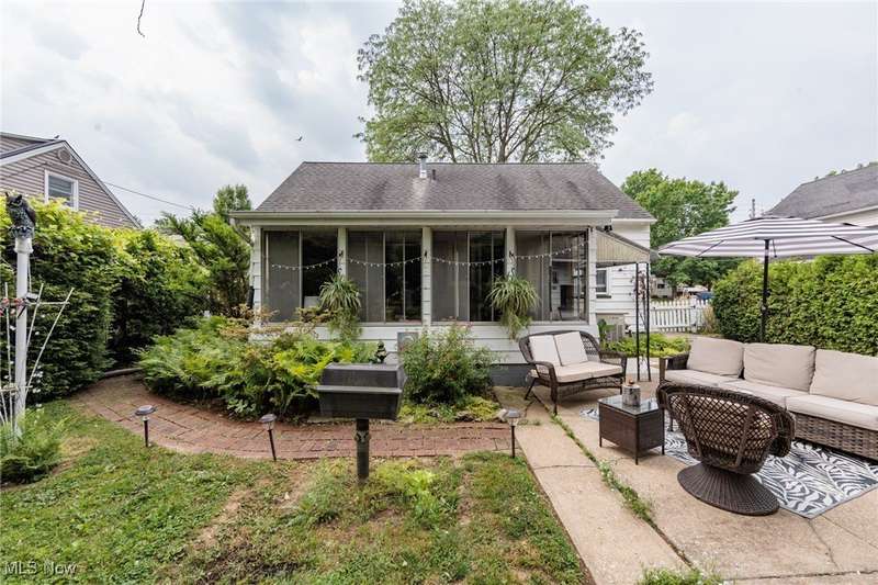 Now featuring a brand new electrical panel and over $30K in structural improvements, this charming Cape Cod in the heart of Berea is back and better than ever-ready for new owners who want peace of mind and personality. With 3 bedrooms, 1.5 baths, and a flexible layout, the home blends original character with smart, modern updates. Beautiful hardwood floors flow through the sunny living and dining rooms and continue into both main-level bedrooms. The refreshed full bath features a new surround, vanity, and ceiling tile, while the kitchen includes all appliances and updated tile flooring that ties in seamlessly with the bath. Just off the kitchen, a cozy sunroom with a new roof and ceiling tiles offers the perfect spot for morning coffee or evening wind-downs. Upstairs, a spacious third bedroom creates a quiet retreat-ideal for a primary suite, guest space, or creative nook. The partially finished basement adds even more usable space with a rec room, dedicated laundry area, and generous storage. Waterlines are already in place for a future basement shower. Major upgrades include a full perimeter drainage system, triple sump pump, and IntelliBraces-providing lasting structural integrity and peace of mind. Outside, enjoy a fully fenced yard, a detached 2-car garage, and a charming shed currently set up as a playhouse. Set in a walkable, friendly neighborhood near parks and downtown Berea, this home offers a rare combo of charm, updates, and versatility. Come take another look-this gem won't last long!