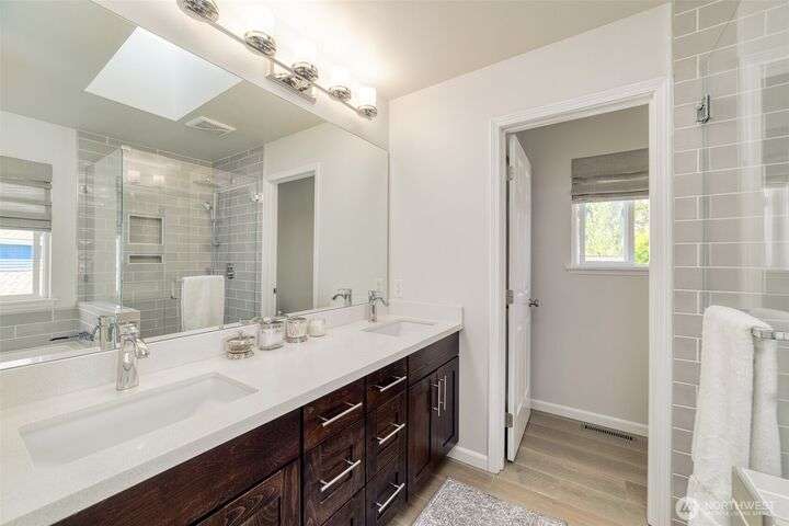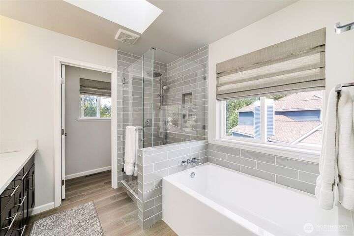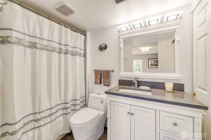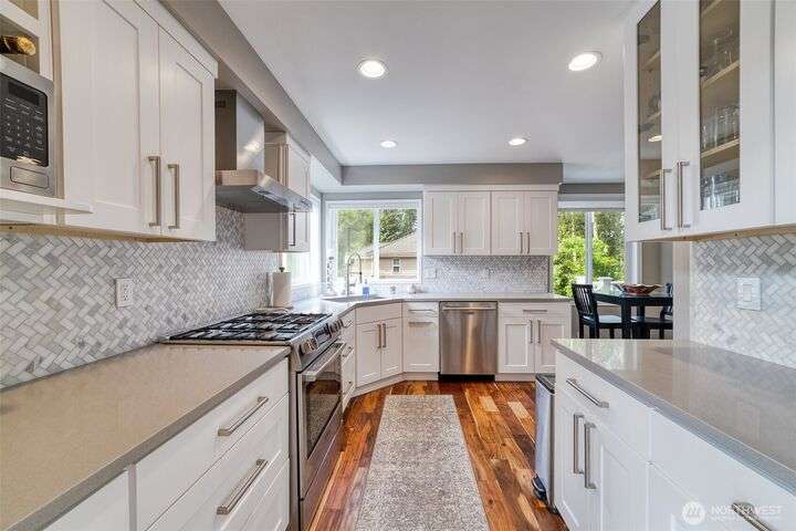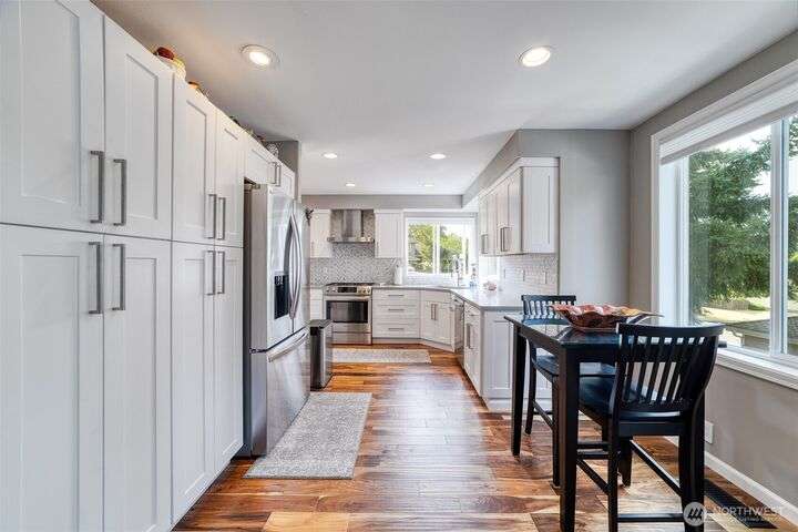 Tucked on a quiet Cul-de-Sac in the coveted Summerwind community, this elegant, fully updated home offers 2,420 sq ft of versatile living across two stories and a daylight basement. Featuring 4 bedrooms—including a one-of-a-kind primary suite—and 3.5 stylishly updated baths. A Gourmet kitchen boasts quartz counters, stainless appliances & custom cabinetry, flowing into an open dining and living area ideal for entertaining. Enjoy EV charging, 3-car garage, huge fully fenced backyard, patio, and a covered deck with integrated drainage. A lower-level 1 bed/1 bath suite offers income potential. With a forced-air heat pump, HEPA filtration, and scenic territorial views, this Eastside Gem blends comfort, style, and functionality.