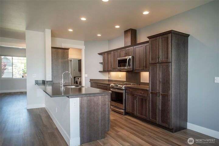 This Craftsman inspired Northwest contemporary home sits on a large lot on a dead end street and features an open concept single level floor plan. Tall ceilings, open kitchen, hard surfaces, lots of natural light and easy transition to outdoor living space. Great room with gas fireplace, custom mantel and built ins. The primary bedroom features tall windows, walk in tile shower and long double vanity. Attention to detail is the focus of this turn key home and no elements have been overlooked. Guest bedrooms, office, hobby room, utility room & 2-car garage. Front & backyard completed with amazing deck, landscape, sprinkler system & fencing. Easy access to the Cascade to Palouse trial, North Alder Street park and Sanders Mill neighborhood.