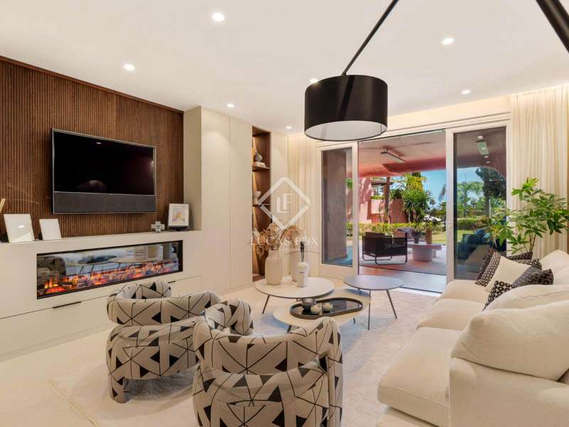 This exquisite 3-bedroom, 3-bathroom home spans 142 m² of meticulously designed living space, complemented by a generous 60 m² private terrace that overlooks beautifully landscaped tropical gardens, offering a serene and private retreat perfect for outdoor living and entertaining. The apartment’s interior is a masterpiece of contemporary design, featuring high-end finishes throughout. The fully renovated kitchen is equipped with top-of-the-line Miele appliances, while the open-plan living and dining areas exude elegance and comfort. The property boasts a Bang & Olufsen sound system, an electric fireplace, and custom-built wardrobes, showcasing the attention to detail and craftsmanship that defines this luxury residence. Each of the three bathrooms is designed with modern sophistication, providing both style and functionality. Please contact us for further information.
