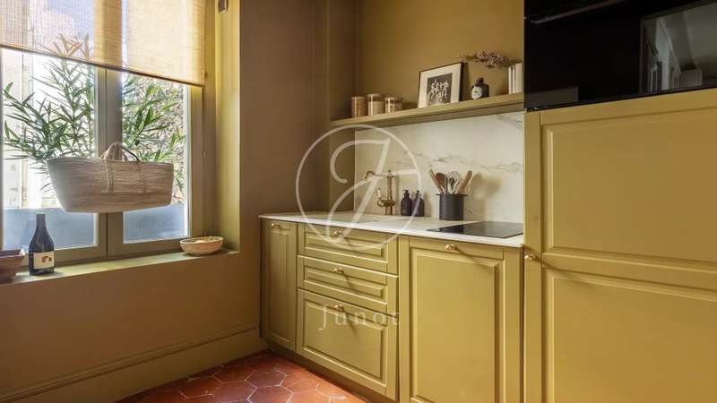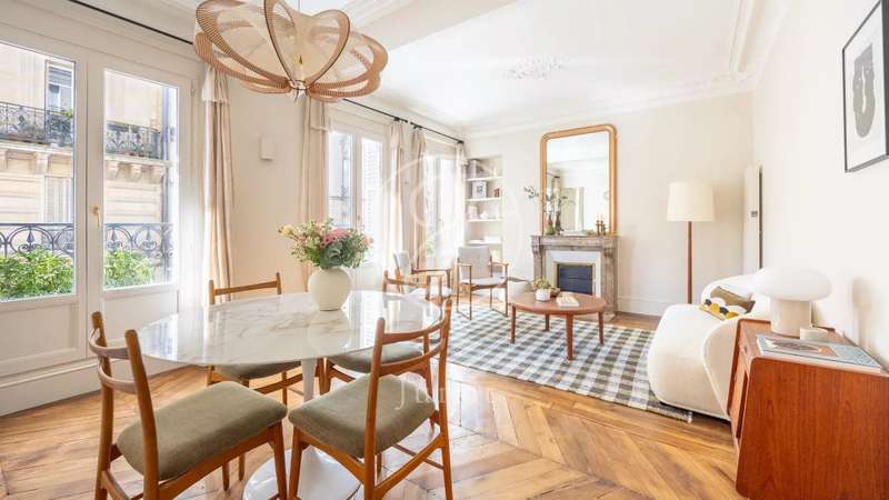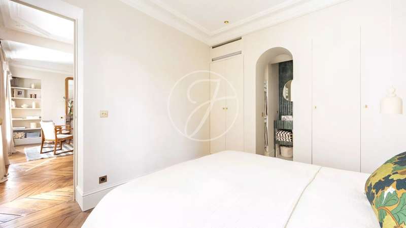 Ideally located just a stone's throw from Le Bon Marché and all the shops in the Sèvres-Babylone district, a superb 44sqm loi Carrez apartment in a beautiful Haussmann building built in 1880 with janitor and elevator. Completely renovated with care and elegance, this property boasts all the charm of the past, with its herringbone parquet flooring, original moldings, fireplace and high ceilings. With generous volumes, its perfectly optimized layout offers an entrance hall, a 21.64sqm double living room opening onto the street to the west, a fitted kitchen opening onto a pretty courtyard, a comfortable bedroom with fitted closets and air conditioning, an adjoining shower room and a separate toilet. This rare offer, proposed furnished, is ideal for a pied-à-terre.
