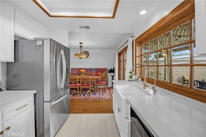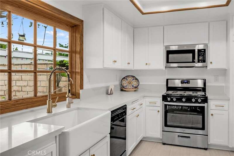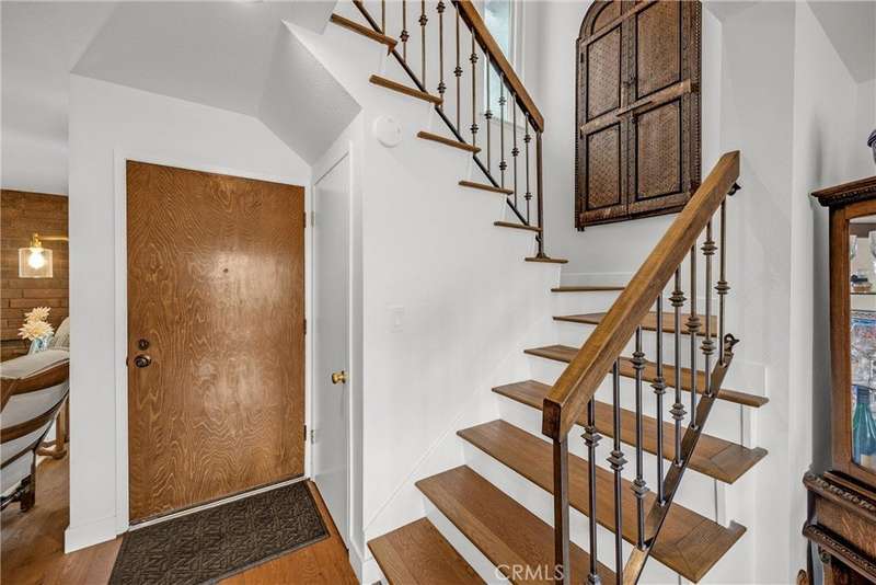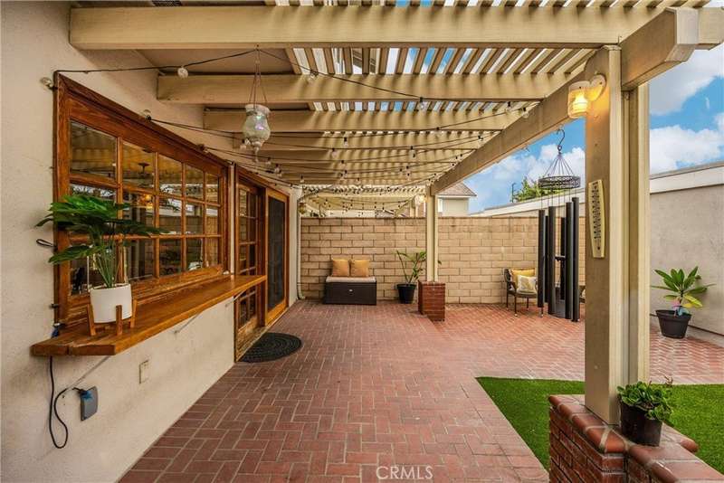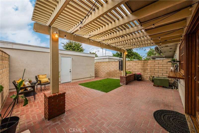 Beautifully Updated Townhome with Custom Designer Touches! This stunning townhome has been thoughtfully remodeled over the past few years with exceptional quality and attention to detail. Highlights include new oak hardwood floors, stair railing with custom handwrought iron balusters, and elegant crystal doorknobs throughout. The inviting living room features plantation shutters, a cozy brick gas fireplace, and serene views of the front brick patio and lush greenbelt. The artfully modernized kitchen boasts custom cabinetry with high-end hardware, quartz countertops, a farmhouse sink with pull-down faucet, and a charming beveled glass mullioned window overlooking the patio. The adjacent dining room, with a matching beveled glass sliding door, creates a seamless indoor-outdoor connection—perfect for entertaining. Stylish finishes continue throughout with oak hardwood floors, elegant gray tiles in the kitchen and baths, and plush herringbone-patterned carpet in the bedrooms. All three bathrooms have been beautifully updated, with two featuring furniture-quality vanities, new sinks, and modern faucets. The spacious primary suite offers plantation shutters, a wall of mirrored closets, and a private bath with a tiled step-in shower and a newer toilet with bidet feature. Storage is abundant, with large bedroom closets, a wall of linen cabinetry, generous kitchen storage, a sizable under-stair space, and built-in shelves and cabinets in the two-car garage. Behind the scenes upgrades include Sensi smart thermostat, newer furnace, and an amazing Phyn smart water sensor system which will turn off your water supply as soon as it senses a leak! The private, partially covered, brick patio pairs perfectly with the low-maintenance artificial grass, ideal for soaking up California’s beautiful weather without the hassle of yard work. Located in the sought-after gated Valley View Park Townhomes, this intimate community features a pool, spa, and clubhouse, with manicured greenbelts and mature shade trees right outside your door. Just open the windows and enjoy the refreshing coastal breeze that comes most days! Highly rated, award-winning Garden Grove schools! Ideally situated near the 22 and 405 freeways, this home offers quick access to Cal State Long Beach, Sunset and Bolsa Chica beaches, as well as shopping, dining, and entertainment. Even better, Starbucks is only a mile away for your morning coffee run! Experience the perfect blend of style, comfort, and convenience.