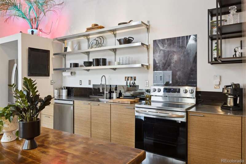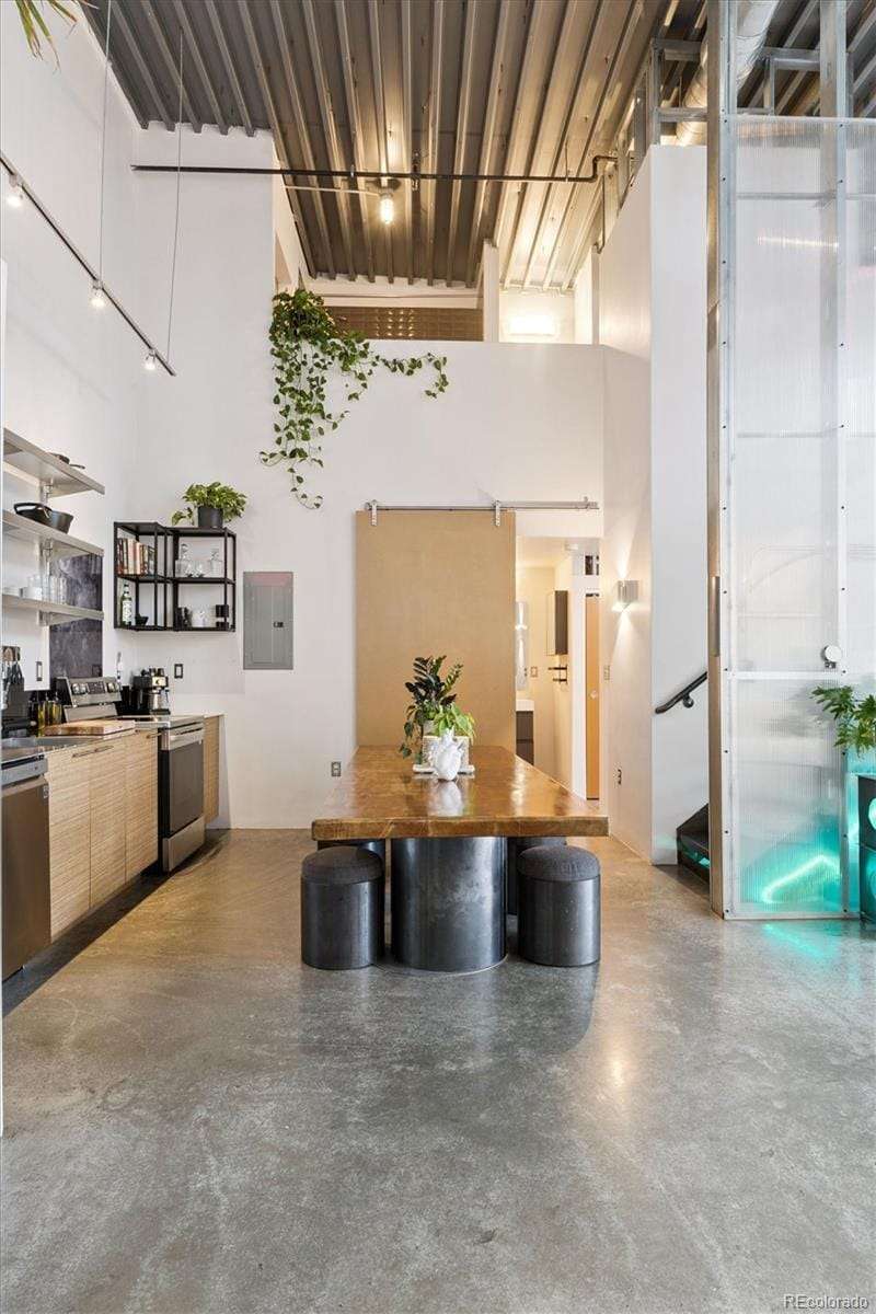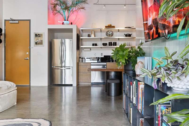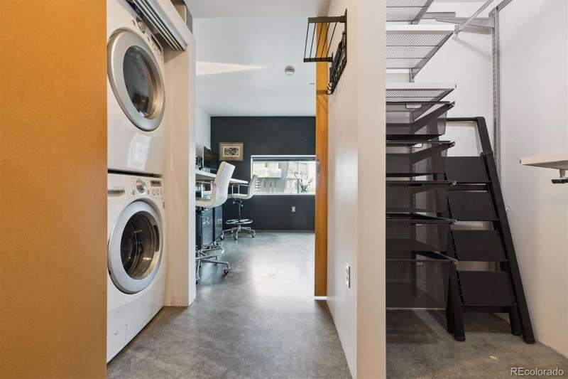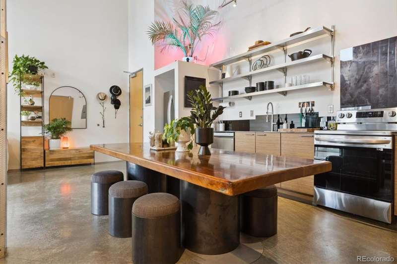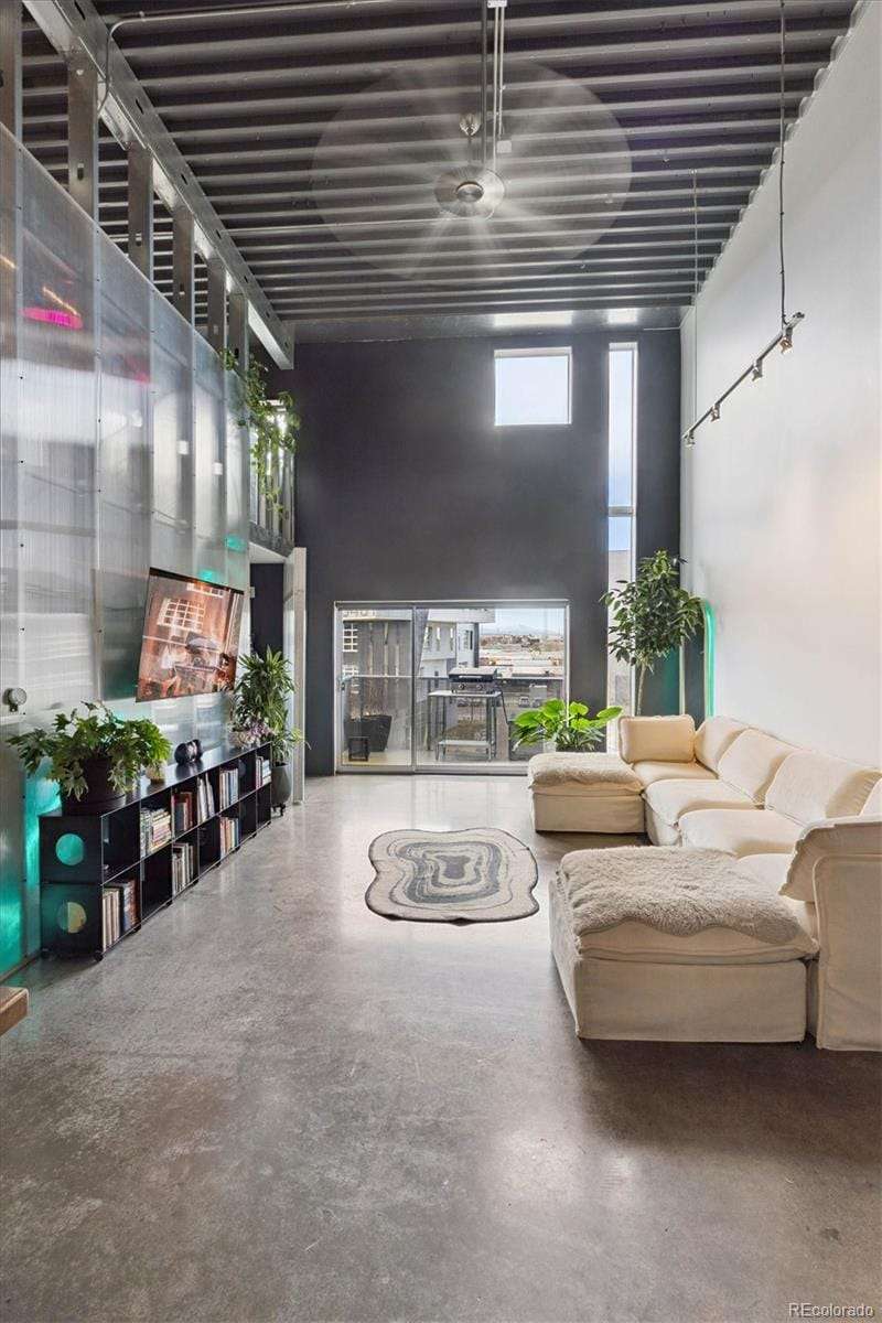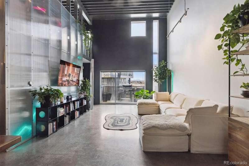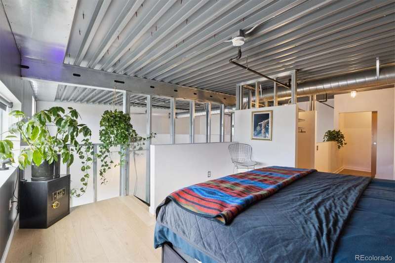 Open and airy modern industrial live/work space located within the multi-award winning TAXI community. This top floor loft boasts unique architectural features such as a 25' high ceiling, polished concrete floors and custom designed windows. This west facing unit has abundant natural light and includes views of the front range's iconic peaks and colorful sunsets. This open concept dwelling has 2 large bedroom spaces, which have been meticulously designed for multi-use functionality. There are 2 updated bathrooms, featuring one with a deep soaker tub and one with a custom walk-in shower. The home has also been recently updated with newer high efficiency top brand electric HVAC system, Scandinavian hardwood flooring, a walk-in shower with CimentArt finish, custom ELFA closets, and newer top-tier LG appliances, including washer and dryer. Walk out your front door and take advantage of all that the RiNo Art District and TAXI community has to offer. The community is located across from the South Platte River trail system, the new RiNo Art Park and a short walking distance to the A Line Light Rail with quick access to Union Station and DIA. The community itself is a mixed-use community of creative residents, innovators, entrepreneurs and businesses collaborating to shape industries such as sustainability, tech, design, architecture, social enterprise and the arts. As an owner at the TAXI community, you will have access to an amazing array of amenities, including a soon to open Michelin chef Mexican restaurant concept, Zero Hour Coffee Shop, access to a full Gym and pool, co-working space, galleries, picnic/BBQ area, skateboard park, community garden and bike maintenance station. The TAXI community also has ongoing parties, events, and lectures. Please reach out to the listing agent for a full list of updates and to learn more about the community. This loft can be used for a residence, business and/or live/work.