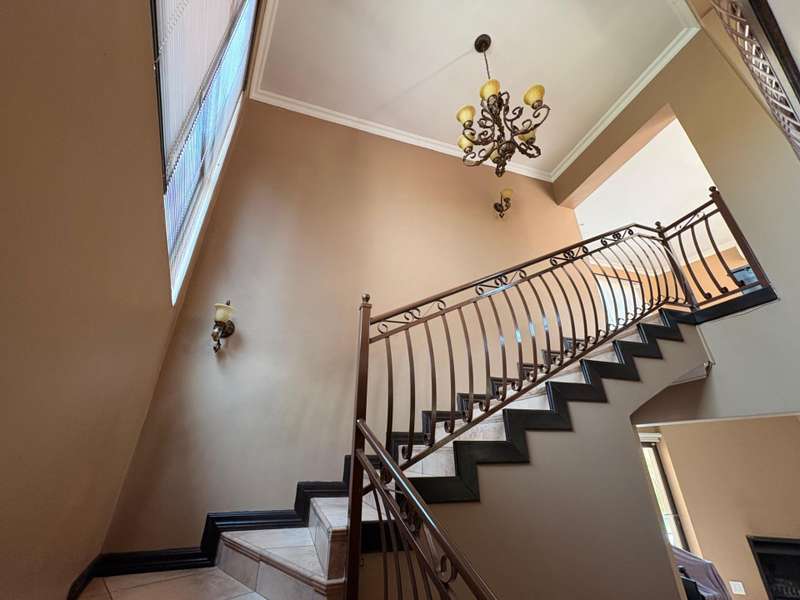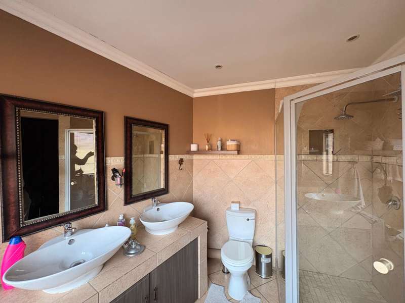 AVAILABLE IMMEDIATELY INDULGE IN AN ELEVATED living experience within this magnificent double-storey residence, meticulously designed for the discerning homeowner. A grand fireplace serves as the focal point of the expansive family room, creating a sophisticated ambiance for intimate gatherings and serene relaxation. The gourmet kitchen, a culinary masterpiece, offers an abundance of space and premium finishes. This exquisite home features four generously appointed bedrooms, including a lavish master suite complete with its own private en-suite bathroom. With two additional full bathrooms and a discreetly placed guest powder room, convenience and luxury are seamlessly integrated. Step outside to discover an elegantly appointed braai area, providing an exceptional setting for al fresco entertaining. Phone me today for a viewing.