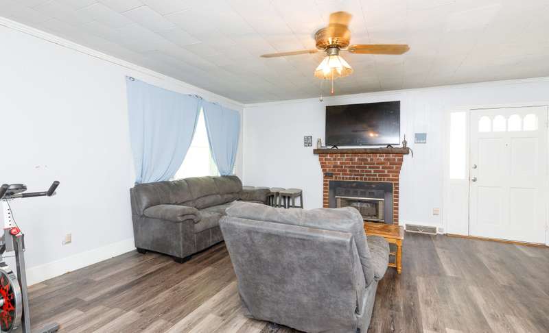 This single-level ranch home in Chester sits on 1.61 acres, offering plenty of outdoor space and potential. A large side porch provides room to relax or entertain, while the detached two-car carport with an attached storage area offers practical parking and extra space. In addition, there are two separate storage sheds on the property for tools, equipment, or hobbies. Inside, the living room features a fireplace as a central focal point. The larger lot and several storage buildings create opportunities for storage, hobbies, or future projects.