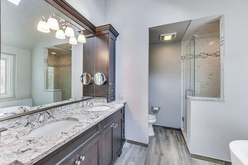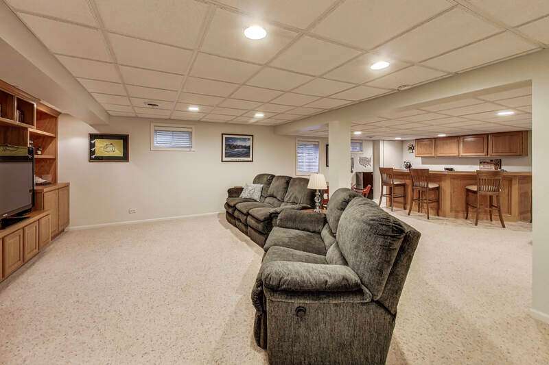 Located on a quiet Oak Creek circle drive, this custom-built Georgian-style home is ready for its next lucky owner. With a spacious, open floor plan and thoughtful updates throughout, this home offers the perfect blend of comfort, style, and modern amenities-ideal for both everyday living and entertaining. The first floor features a versatile bedroom/office with an adjacent bath, providing excellent work-from-home flexibility. The living room can easily be converted into another office or first-floor bedroom. The chef's kitchen is a standout, offering ample prep space and a central island. Its seamless flow into the vaulted family room and stone patio with two separate seating areas creates an entertainer's dream. The first-floor laundry room, conveniently located away from the garage, also provides outdoor access. The mudroom off the garage serves as an ideal landing zone, keeping clutter contained. Upstairs, the master suite offers a peaceful retreat with a large closet, tray ceiling, and a separate bath and shower, ensuring both storage and comfort. Four additional generously-sized bedrooms, each with walk-in closets, provide plenty of room for family and guests. The full-pour finished basement is perfect for entertaining, featuring a full bath, bar area, and ample space for a TV area, game room, or craft space, with additional storage in the mechanical room. The expansive backyard is a true oasis, offering mature landscaping and a CB Conlin-designed patio-perfect for relaxing or hosting gatherings. Recent Improvements and Ages: Front Windows (2019) with lifetime transferable warranty, Sump Pump (2016), Washer/Dryer (2015), Master Bath Renovation (2013), Kitchen Appliances (2007), Upstairs Carpet (2017), Lawn Sprinkler System (2014). This home is ideally located within walking/biking distance of Scott Elementary, Madison Jr. High, the neighborhood pool, library, and over 25 miles of bike paths. Top-rated Naperville Central High School and District 203 schools are just minutes away. Plus, with easy access to Pace buses and the Metra, commuting downtown is a breeze. Don't miss the opportunity to own a stunning home in one of Naperville's hidden gem neighborhoods!