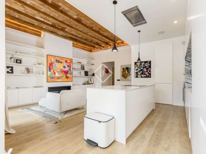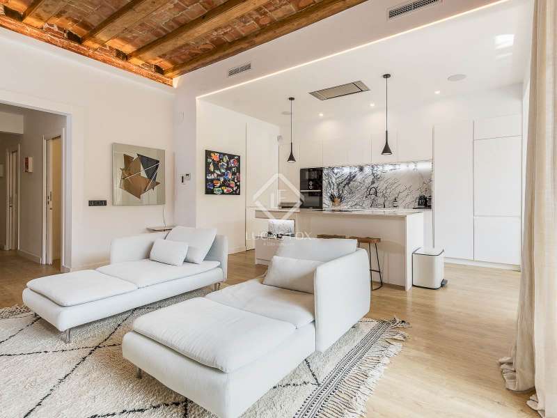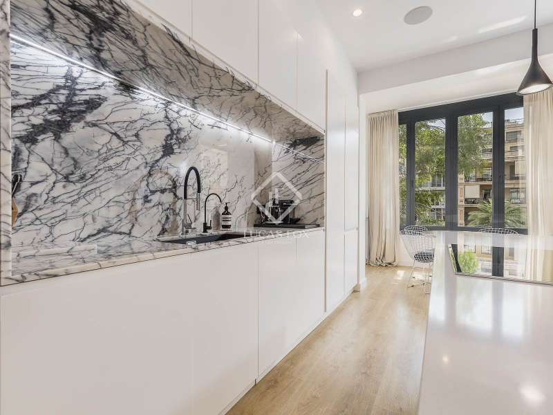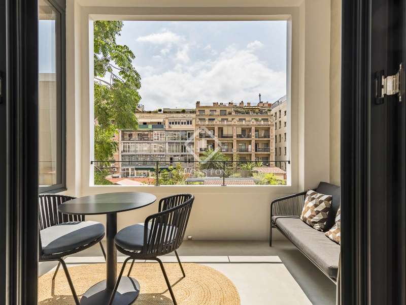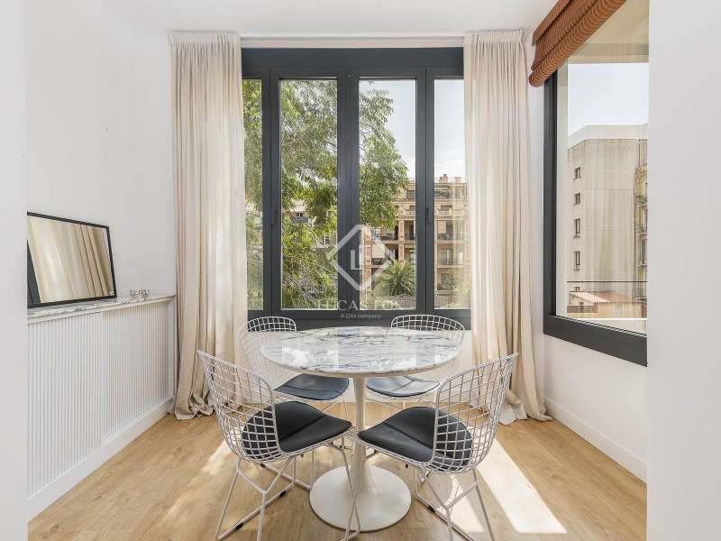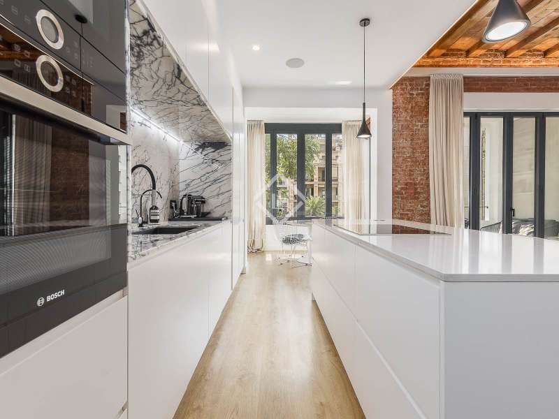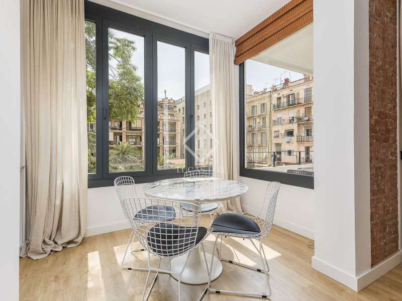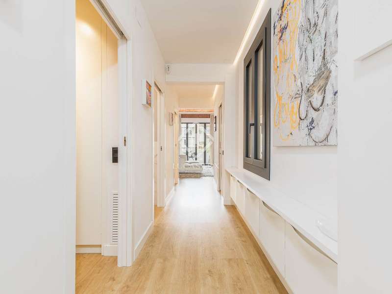 Located in an elegant, period building from the early 20th century with an elevator, this fully renovated apartment perfectly combines modern comfort with the essence of classic Barcelona architecture. Its 3.4 m high ceilings with exposed Catalan vaults, along with the meticulous renovation, add character and personality to every corner. The property stands out for its light and its 5 m² south-facing balcony terrace, perfect for enjoying a sunny breakfast, a drink at sunset, or simply relaxing with a book in a peaceful setting, away from the hustle and bustle of the city. Upon entering, a welcoming entrance hall welcomes us. Next, we discover the first double bedroom with a private bathroom en suite bathroom and large custom-made wardrobes. Following the corridor, we access a second double bedroom and an additional medium-sized bedroom , both served by a full bathroom . The day area impresses with its spectacular 40 m² open space, which integrates the living room, dining room , and a fully equipped designer kitchen, carefully designed to combine practicality and aesthetics. This space opens onto the Eixample courtyard through large windows, providing a peaceful atmosphere and extraordinary natural light throughout the day. The apartment features new woodwork, ducted air conditioning with a hot/cold pump, and a functional design that guarantees comfort in daily life. The location is unbeatable, nestled between Passeig de Gràcia and Passeig Sant Joan, in the heart of Eixample Right, surrounded by amenities, public transport, shops, gyms, cafes, and a wide range of cuisines. All this in a privileged setting that combines urban dynamism with the tranquility of a southeast-facing apartment overlooking a charming and quiet courtyard. Thanks to its size, impeccable renovation, and the scarcity of similar properties in the area, it also represents an excellent investment opportunity with great profitability potential. A home with light, character, and quality of life, ready to move into.