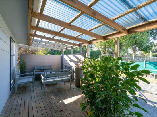 Just a five minute stroll from Otaki Beach, this charming three bedroom home offers the perfect blend of relaxed coastal living and everyday ease. Designed for low-maintenance comfort, the home features open-plan living that flows seamlessly to a sunny conservatory and a sheltered deck—ideal for year-round enjoyment. High ceilings with elevated windows invite in natural light, creating a sense of space and warmth throughout. A clever study or storage nook adds flexibility to suit your lifestyle. Set in a family-friendly spot with a kids' playground just across the road, and your local dairy and favourite café just around the corner. A single garage completes the package. Whether you're looking to downsize, invest, or secure a beach retreat, this is effortless living by the sea.