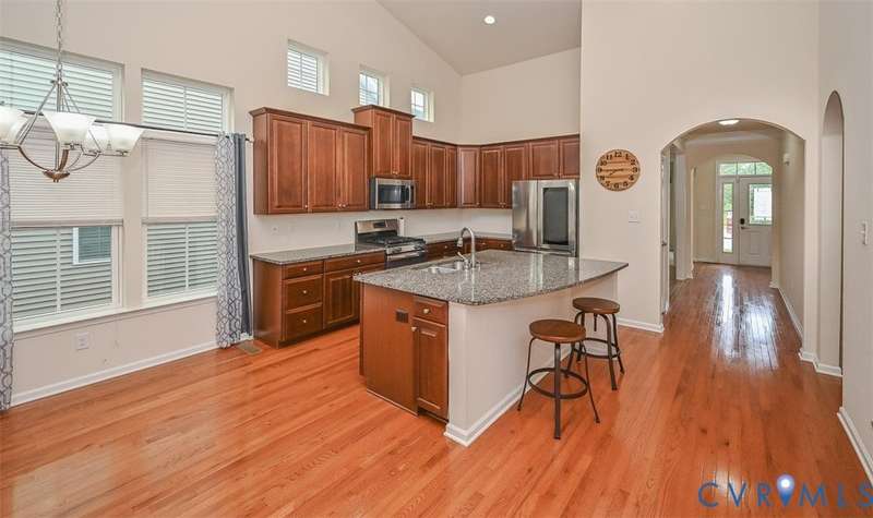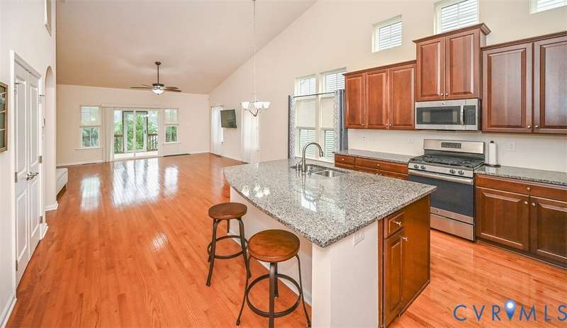 Welcome to Charleston Club in Magnolia Green, where living is designed to be easy with maintenance free exteriors! This one-level transitional rancher features almost 2,100 square feet, 3 bedrooms and 2 full baths has so much to offer with its functional open floor plan. The main living areas include wood flooring throughout and vaulted ceilings in the bright family room and kitchen. The gourmet kitchen has a large center island with breakfast bar, granite countertops, stainless steel appliances and gas cooking. The owner's suite features two walk-in closets, a huge en-suite full bath with tile flooring and shower. Other notable features include a screened in porch, double width concrete driveway, two car garage, dimensional roof, stone and vinyl siding and so much more. Charleston Club offers its own private pool, clubhouse, fire pit, and bocce ball court. As a resident of Magnolia Green, you'll have access to an impressive array of amenities, including an aquatic center, walking paths, championship golf, social activities, a golf shop, restaurant, tennis and pickleball courts. Come and experience the world class amenities. This Home is Truly One You Don't Want to Miss!