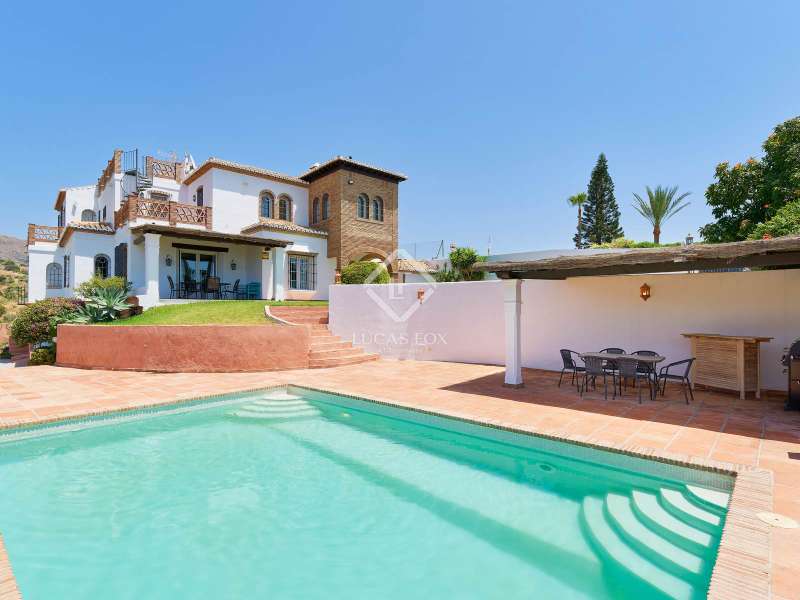 Lucas Fox presents this unmistakably stylish villa in a prime location, just 5 minutes from the beach. It combines rustic Mediterranean essence with the refinement of modern amenities. With nearly 400 m² of built area on a spacious plot of over 20,000 m², this property offers an incomparable setting of privacy, elegance, and connection with nature, where open views of the sea, La Herradura Bay, and the mountains create a setting of serene and timeless beauty. Access to the property leads to a porch that opens onto the garden and pool area, a space designed for enjoying the outdoors, with relaxation areas and ideal settings for gatherings with friends or family gatherings. The villa is spread over three floors, designed to offer spaciousness, comfort, and a high level of privacy. On the main floor , an elegant lobby sets the tone for the property and leads to a welcoming living room with a fireplace and direct access to the porch, pool, and garden. This level also includes a separate kitchen, a guest toilet , and a spacious room that can be used as an study, second living room, den, or additional bedroom , adding versatility to the entire property. On the upper floor are three bedrooms, all with en suite bathroom . The main bedroom becomes a truly private retreat thanks to its impressive floor space, its walk-in closet, its sunny terrace with a solarium, and a spacious office located in the tower, where working becomes a privilege thanks to the views. The ground floor houses a completely independent apartment with a living room and integrated kitchen, a large en- suite bedroom , and a full bathroom , ideal for both guests and creating a private area separate from the main property . Added to this is an additional studio, also with independent access , which has a living room, open kitchen, bedroom and bathroom, perfect for entertaining guests in total comfort or for high-end tourist rentals. The property's exterior, with its private pool surrounded by vegetation, chill-out area, and barbecue area, completes the experience of a villa designed to enjoy the Mediterranean lifestyle at its finest. Its excellent access, proximity to the centre of La Herradura and its beaches, as well as the spaciousness of its interior and exterior spaces, make this villa a unique residence. A property that not only offers a home, but also a distinguished lifestyle, designed for those who value privacy, exclusivity, and the luxury of authentic things.