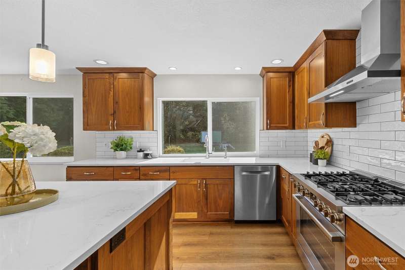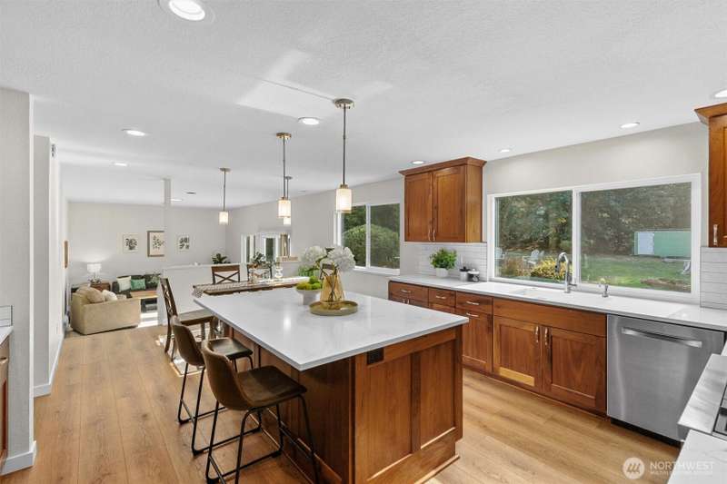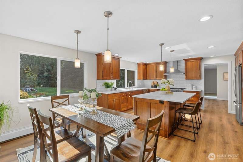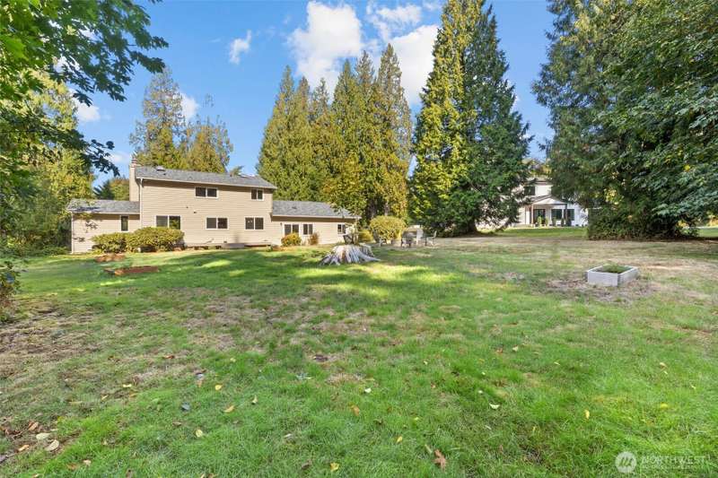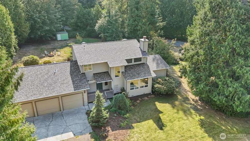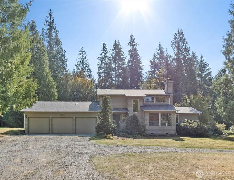 Welcome to Woodinville! This beautiful home sits on a private, flat 1.2-acre lot in a desirable neighborhood. Remodeled kitchen features large center island, gas cooktop, & extra eating area. All appliances & W/D included. Enjoy formal dining room, spacious bonus room, & three bedrooms upstairs including the primary suite. Two bathrooms & utility room have been updated. Additional highlights include tankless water heater, high-end radiant heat, generator hook-up, & brand-new roof & windows. The 4-car garage offers three doors plus an extra-long bay for parking, storage, or workspace. The expansive lot & circular driveway provide endless potential for gardening or extra parking. No HOA. Located in the sought-after Northshore School District!