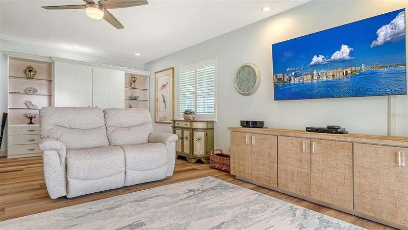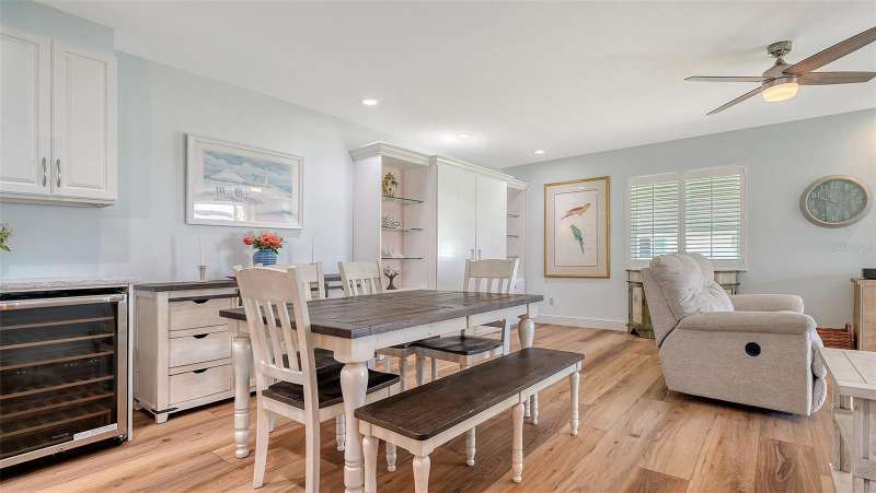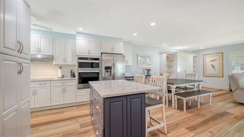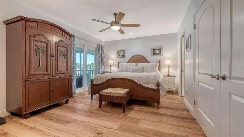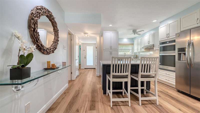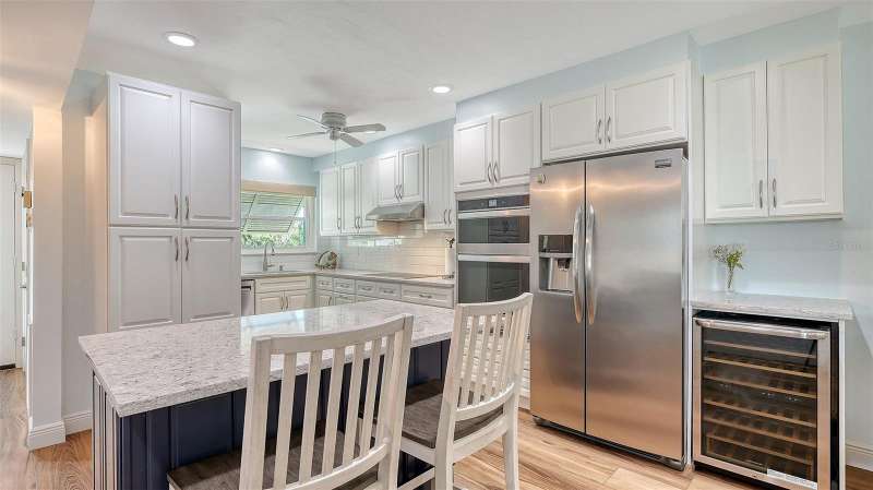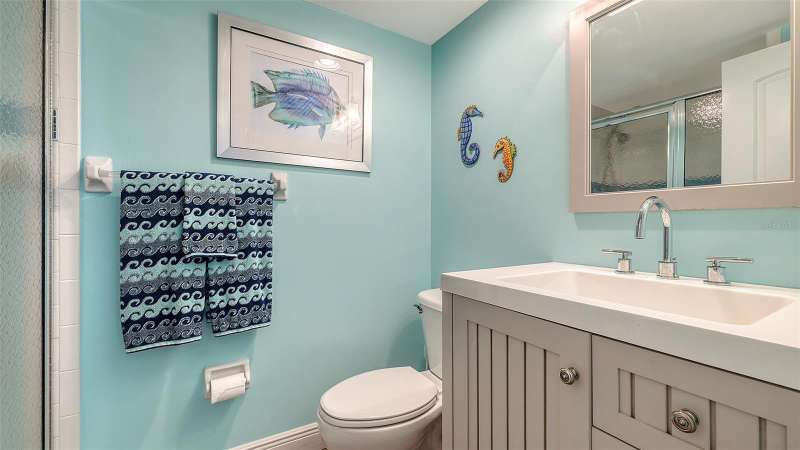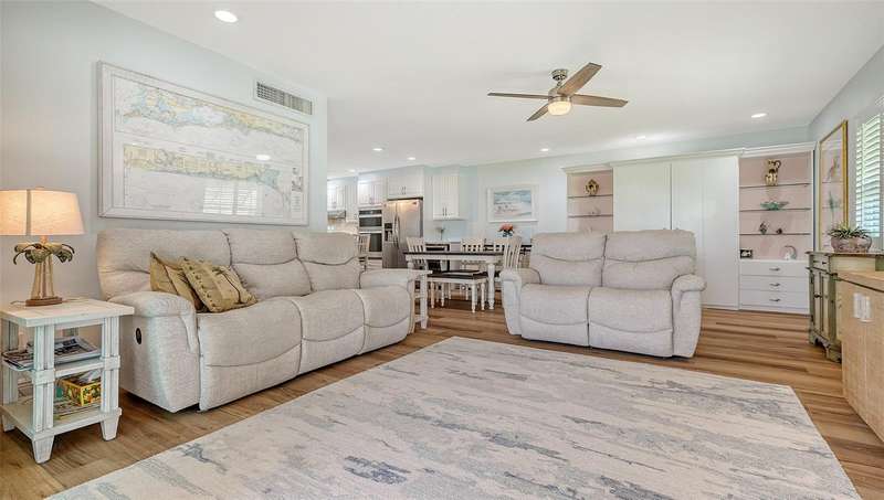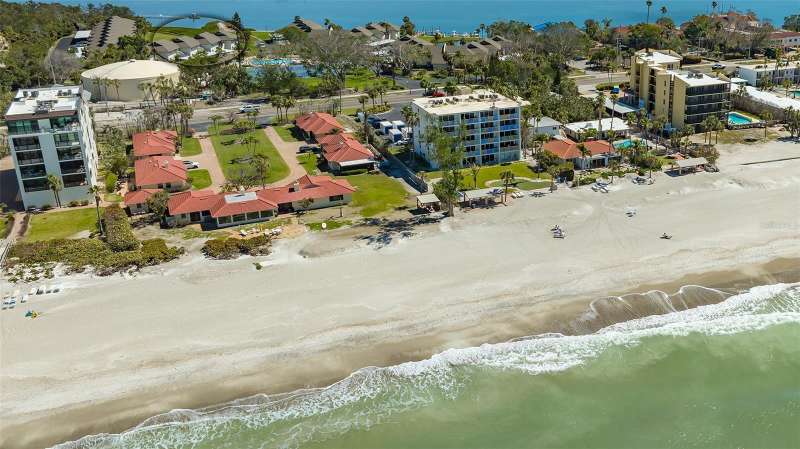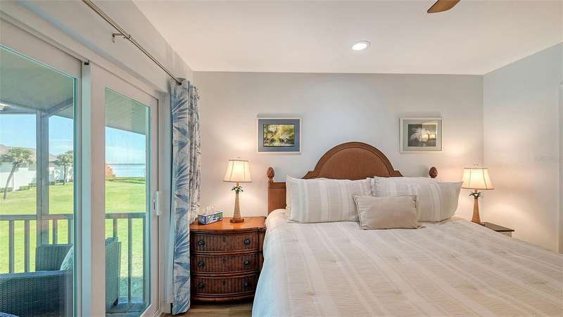 Beautiful, custom 2024 renovated second floor two bedroom, two bathroom Pelican Harbour & Beach Club condo with panoramic Sarasota Bay views. Stunning water views across Sarasota Bay are yours from the Great Room, the Primary Bedroom & from your waterfront, covered & screened in Balcony. Entertain your guests here or enjoy your own private dining outdoor lanai. Almost everything is new & improved in this open concept, sunny & bright home from updated electrical to new impact resistant hurricane proof sliders & windows throughout. You’ll really enjoy the large new window in the kitchen with great views of the pool so you can keep an eye on family & grandchildren. The totally redesigned kitchen features all new custom raised panel cabinetry with soft close drawers, light gray with graining Quartz center island & kitchen counters, Frigidaire Gallery induction cooktop, white subway tile back splash & built in Whirlpool microwave & oven. Newly installed Luxury Vinyl Plank flooring is 9” wide plank in a light oak color. Other improvements include a wine refrigerator, a n HVAC system installed in 2023 plus a new roof on this building in 2024 & exterior painted in 2024. The Sellers have invested close to $100,000 to accomplish this stunning remodel. The open floor plan features a large Great Room which includes the dining area & the living room with several couches plus a double bed size Murphy bed attractively hidden between two built in bookshelves & cabinetry for extra sleeping accommodation. The generous sized Primary Bedroom with En Suite bath has serene waterfront Bay views with sliders opening to the screened in balcony. The En Suite features dual sinks, a custom walk-in tub/shower combo & a Toto toilet. The second guest bedroom is bright & comfortable with an adjoining bath with a shower. Bonus feature of the in unit laundry room is a full size LG high efficiency washer & dryer. There is abundant storage room in this unit especially in the number of new kitchen cupboards, storage areas & closets. Assigned storage lockers are also available in the mail room. Pelican Harbour & Beach Club condominium complex offers one of the best Amenity packages on Longboat Key including 200 feet of private deeded beach with new lounge chairs, resort style heated pool, adjoining clubhouse, marina for boats up to 28 feet with Sarasota Bay frontage of 800 feet, kayak storage & launch area and is large dog/pet friendly complex plus has tennis & pickleball courts which have recently been renovated & painted. On site maintenance staff plus a professional management company, funded reserves and has successfully passed its milestone inspection for the beach side midrise condo building plus has installed brand new roofs & hurricane rated carports. None of the units in this building sustained any damage from hurricanes Helene or Milton or had any water intrusion. Pelican Harbour’s perfect location at Mid Key Longboat is close to all the best restaurants & shops on Longboat Key and Bay Front Park which offers walk in pickleball games, tennis courts, dog park areas plus an exercise/fitness classes building.