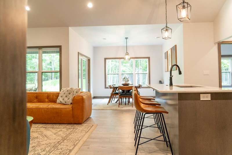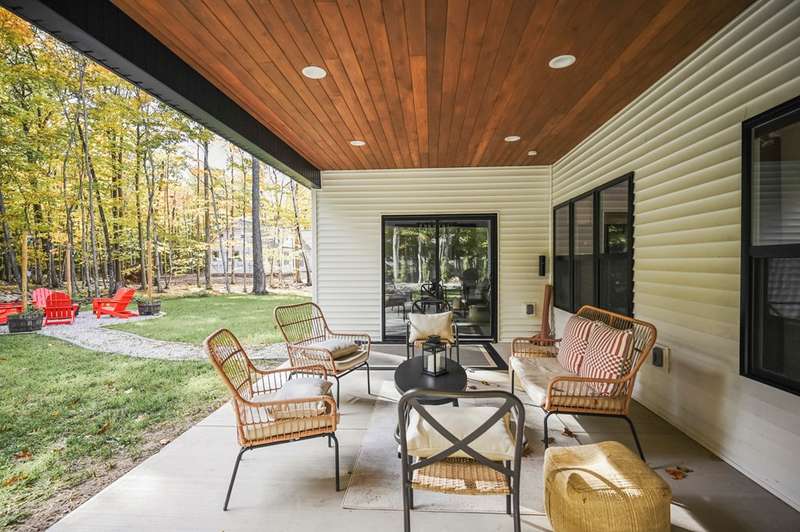 Just in time for fall! Successful turn-key rental with 3 beds, 2 baths in the desirable Whispering Woods Development. Kitchen offers custom cabinets, quartz counters, large pantry, and an eat-in island opening to a cathedral-ceiling great room with gas fireplace. Dining area leads to covered patio and grill with path leading to cozy fire pit--perfect for entertaining. Primary suite features tray ceiling, tiled shower, dual vanity, and walk-in closet with pass-through to laundry. Quality build with 9+ ft ceilings and recessed lighting throughout. Move-in ready for year-round living or continued rental success. Centrally located near Baileys Harbor, Egg Harbor, and Fish Creek. Furniture & Furnishings Negotiable.