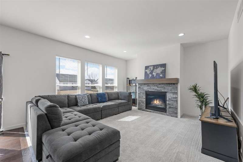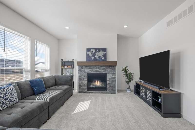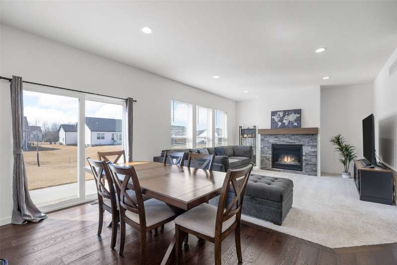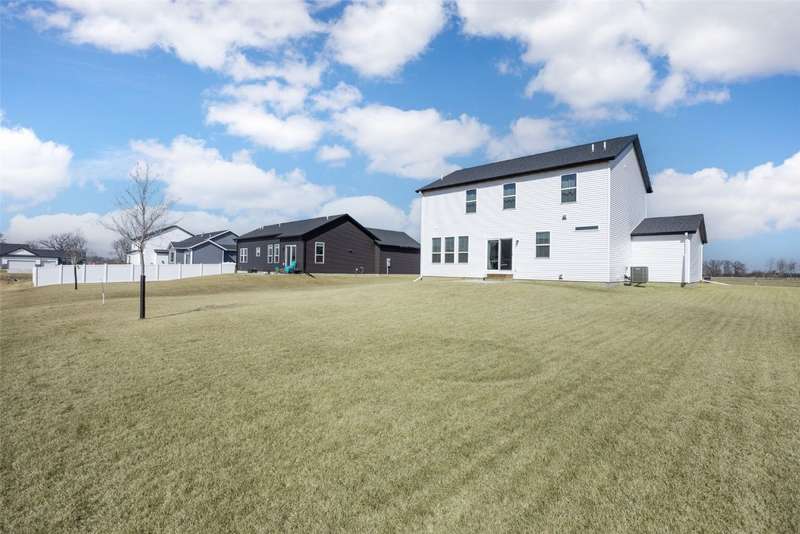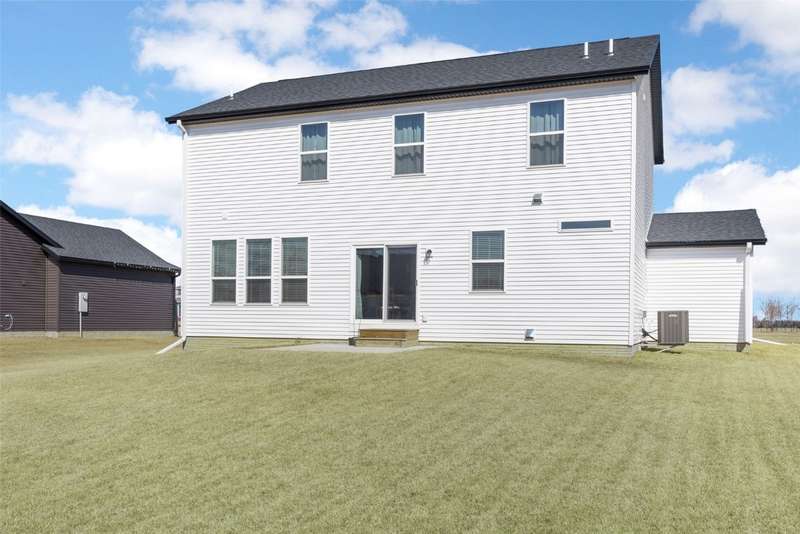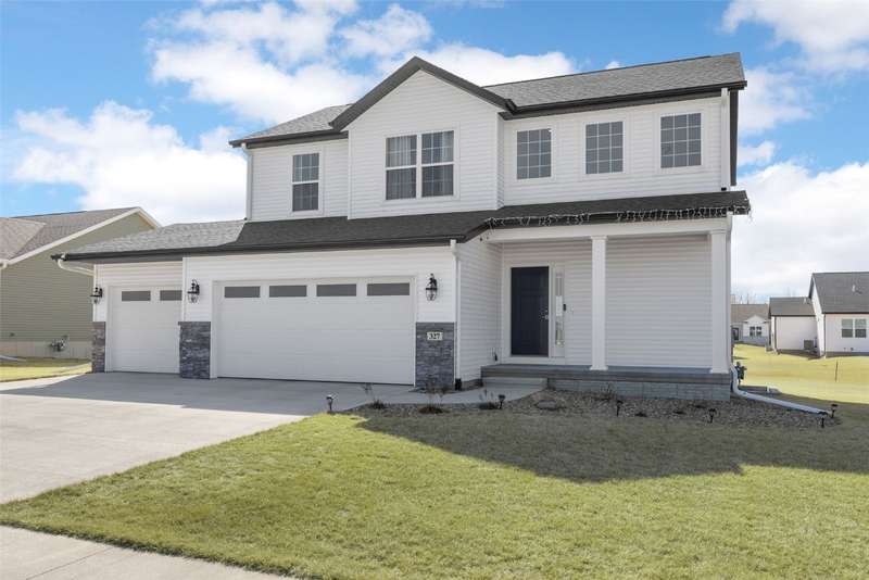 Located in a great newer neighborhood, this 2023-built, north-facing home in Linn Mar school district offers modern comfort and thoughtful design in every detail. The "Kintzel" by Skogman Homes features a spacious open-concept layout, complete with a stunning great room and a cozy stone-surround fireplace with a wood mantel. The light and bright kitchen is a showstopper, featuring white cabinetry, stainless steel appliances, a stylish tiled backsplash, and a large walk-in pantry—perfect for everyday living and entertaining. Upstairs, you'll find four generously sized bedrooms, including a luxurious primary suite with a dual vanity, glass-door shower, and a walk-in closet. A second full bath and a conveniently located laundry room complete the upper level. The unfinished lower level offers endless possibilities to put your own touch on the space, with the potential to add a bedroom, bathroom, and rec room. Step outside onto the back patio and enjoy the flat backyard, perfect for relaxing, entertaining, or play. Centrally located close to all the amenities in town, this nearly new home is move-in ready!