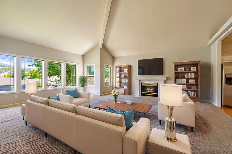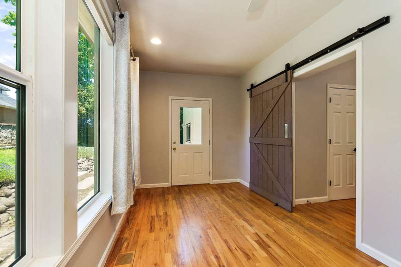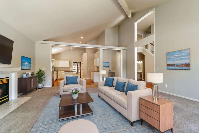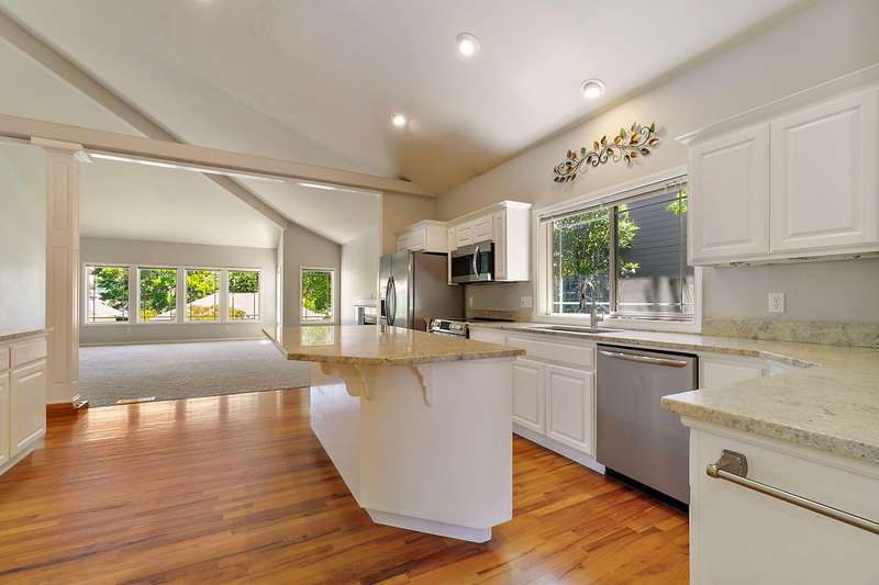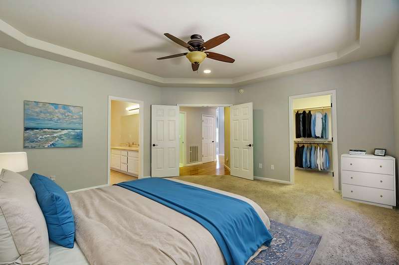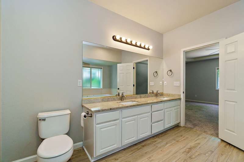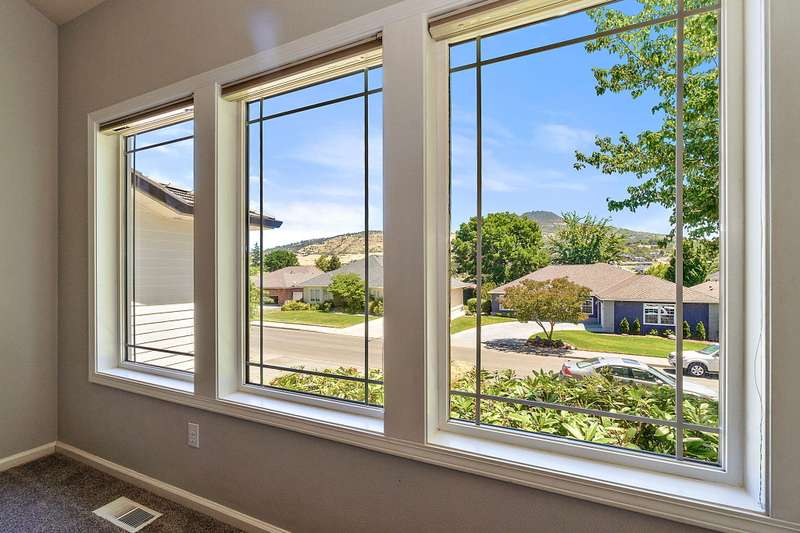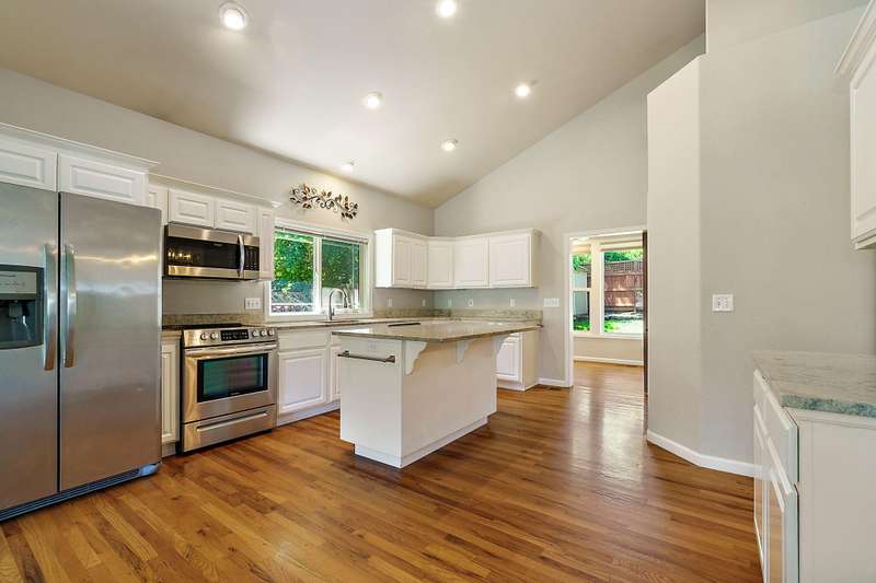 4 bdrms + flex rm off kitchen that would make a great office w/hardwood floors and lots of windows. Amazing updated light & bright home in Amblegreen Estates w/new carpet, new interior paint. Lg great rm w/ lg vaulted ceilings, lg windows, gas log fireplace that opens to kitchen w/island, s/s appliances, granite counters, white cabinets, hardwood floors and a formal dining rm. Primary suite w/dbld doors on main level, jetted tub, dual sinks, lg shower and walk in closet. 3 good size bdrms upstairs + bonus rm and full bathrm. Oversized 2 car garage w/ extra storage above the garage. Fenced backyard w/lg patio, nice landscaping (to include a Persimmon tree, Fig Tree & Grapes that produce sweet fruit), storage shed, Tile roof, brick exterior in front.