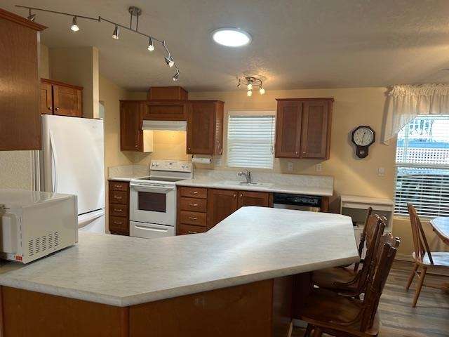 Picture perfect and move in ready. This perfect home in desirable park at the north end of Yreka. Large breakfast bar, nearly new appliances; vaulted ceilings and open living area. Large primary ensuite with spacious bath and large step in shower. This home has been well taken care of. The views from the deck to the hills and trees are just beautiful. Long carport and spacious storage shed at rear. Don't miss this one!