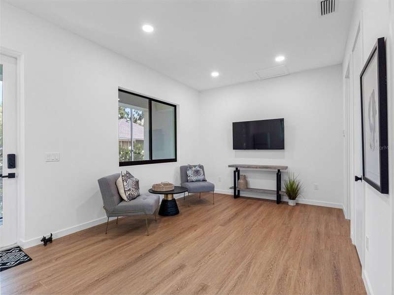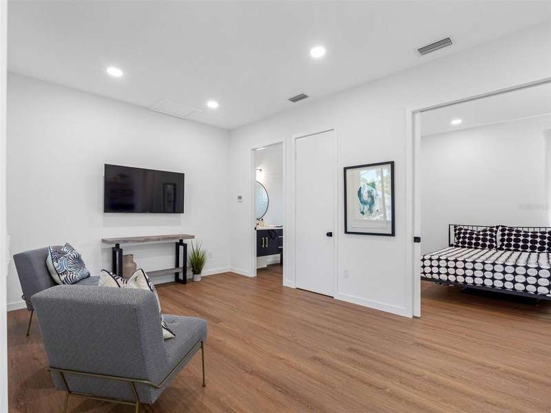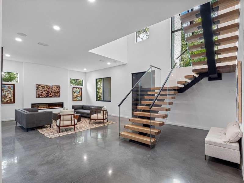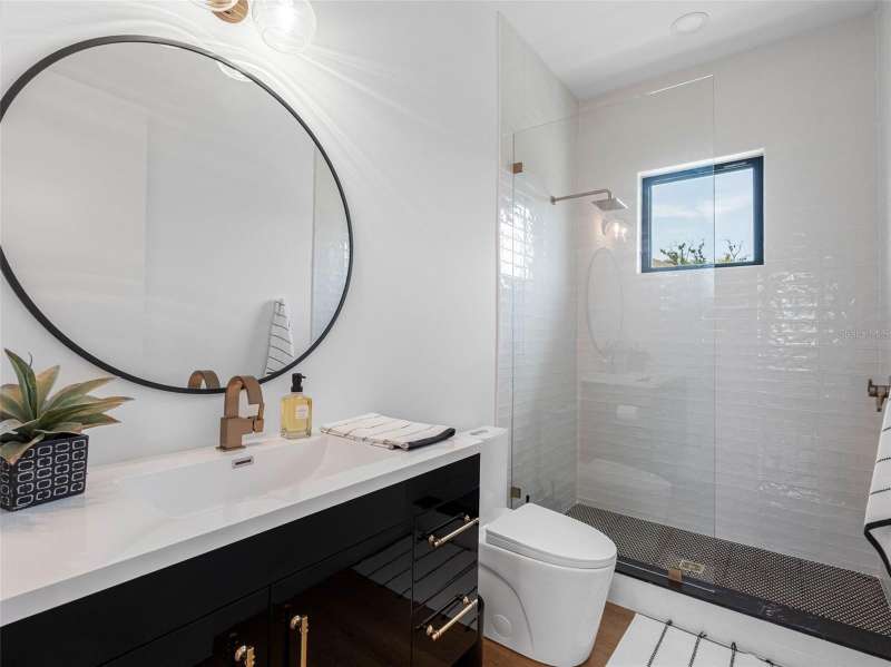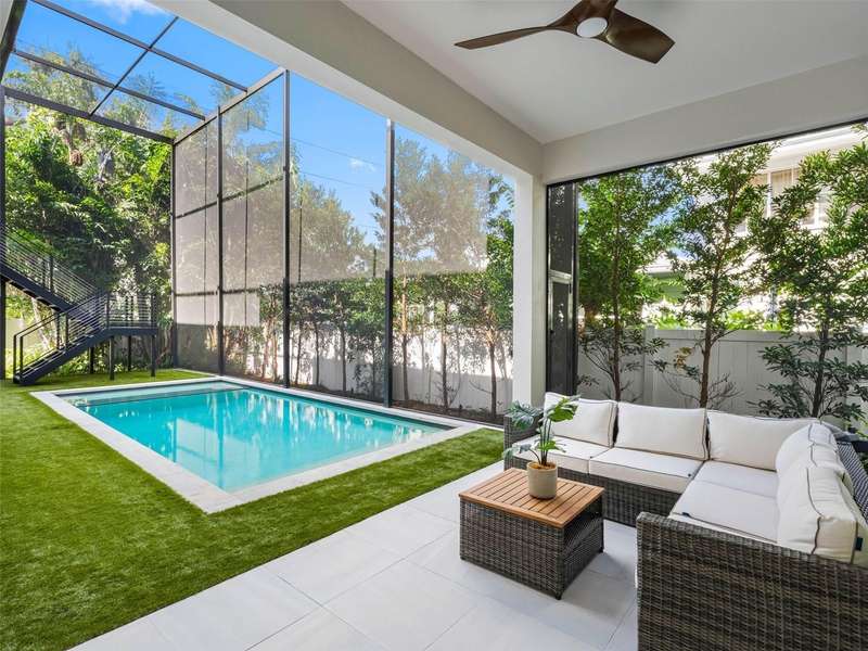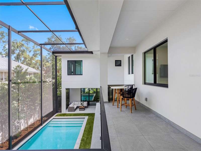 Under contract-accepting backup offers. California modern nestled in the heart of all the charm and tradition of Historic Old NE.This 2023 solid block home with steel trusses/framing enveloped in Icynene insulation is built to stand strong and still be eco friendly.Solar panels generate enough electricity to run the house and 2 electric vehicles with the minimum Duke charge. The verdant, xeriscaped yard, leads up a modern path to the grand, pivot door. Inside, polished concrete floors seamlessly give a clean, modern aesthetic with a palette of brown woods, black, and brass. Nine foot sliding doors surround the courtyard, opening the entire first floor to a screened, private sanctuary surrounded by lush greenery.The gathering room with 11’ ceilings, and a linear fireplace that gives year round ambiance, is just far enough away from the kitchen to give it a luxurious feel but still part of the action.The kitchen overlooks the courtyard with floor to ceiling custom oak cabinetry.Everything is expertly designed to give gracious amounts of counter space and storage.Monogram appliances include a large induction cooktop, dishwasher, and double oven with Advantium.The restaurant sized fridge and freezer tucked in the large pantry not only give you the most food storage possible but also allow for ease of organizing and placing groceries. Rich black granite with brass veins hugs a massive waterfall island and deep sink.The wet bar, with reverse osmosis system, beverage cooler and reeded glass cabinetry make this the perfect conversation area.The pool bath opens to the courtyard truly making this inside/outside living year round.The courtyard and pool area continue maintenance free living with soft turf, an eight person jacuzzi and the ability to heat the pool and jacuzzi with solar. Completing the ground floor is a flex space currently used as a media room with surround sound system that could also be an office, gym or playroom. The entire ground floor has a Sonos sound system. The floating staircase is a work of art leading to the second floor, with solid oak treads, glass railings and steel beams. Immediately at the top, is a large laundry room with GE profile graphite appliances, a deep sink, long quartz counter and upper and lower cabinets. The entire second floor is clad in a rich hued, wide oak plank. The private, primary suite has an exceptionally large walk-in closet, and spacious light-filled bath with floating oak cabinetry,Italian terrazzo walls, and seamless porcelain flooring that give the juxtaposition of old and new. Two additional bedrooms, with pool or treetop views, sized for king beds, have custom closet systems and a bathroom that pays homage to the sidewalks of Old NE with hex tile, Oak cabinetry and brass and black accoutrements. The guest house has a bedroom, full bath, kitchenette, living room, and is one of best spaces on the property. A West facing balcony is the perfect sunset aperitivo spot. A three car garage with alley access, a fenced yard and security cameras are a few of the extras. Walk three blocks to the water and enjoy the third largest waterfront park system in North America with sand volleyball, pool, playgrounds, the beach, live music, art and food festivals and amazing sunrises. A mile stroll will have you in the buzzing downtown scene. A bike ride or walk is great way to get to all that downtown offers-museums, shopping, restaurants with Michelin nods, the Saturday Market,Grand Prix and the magnificent Pier.