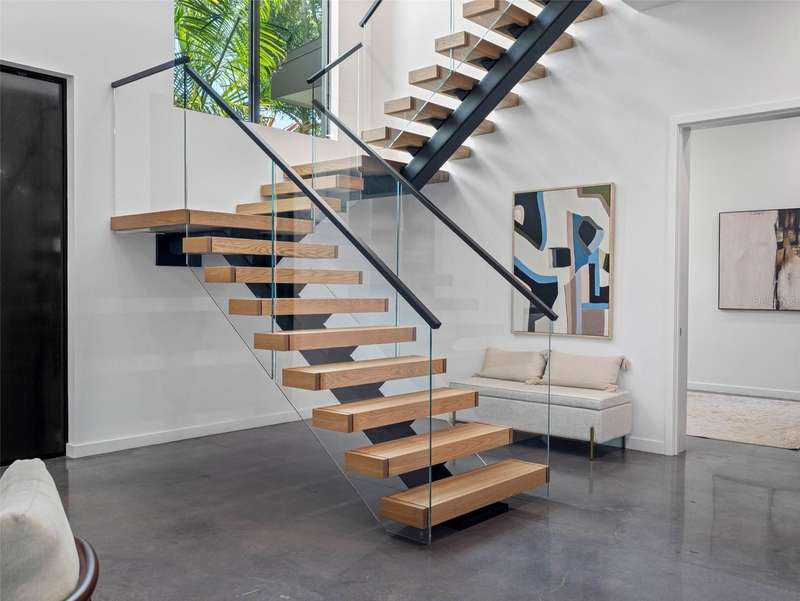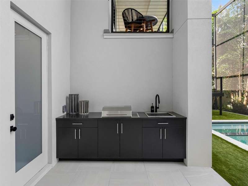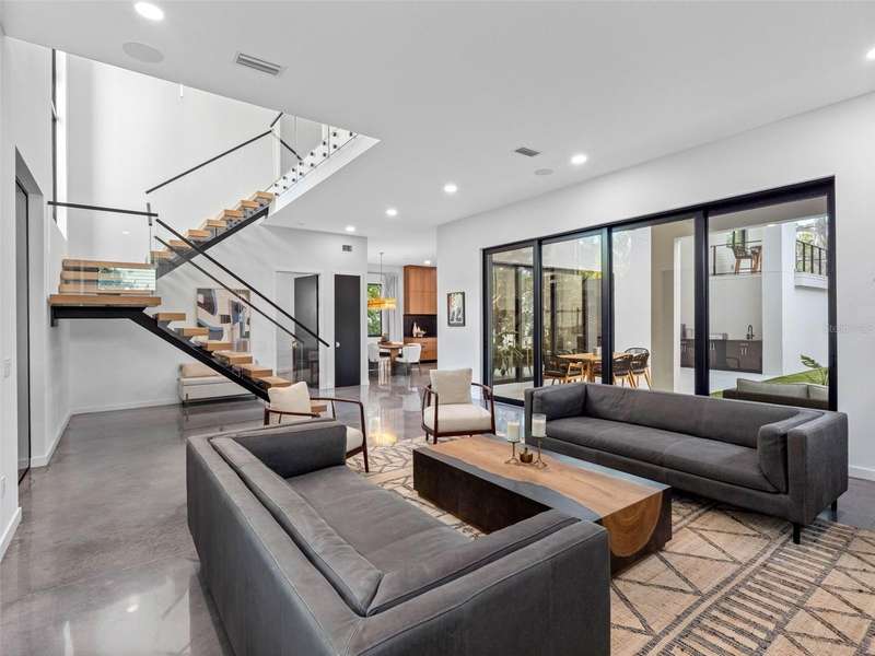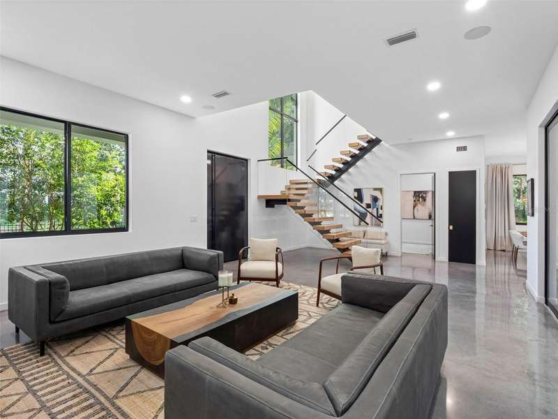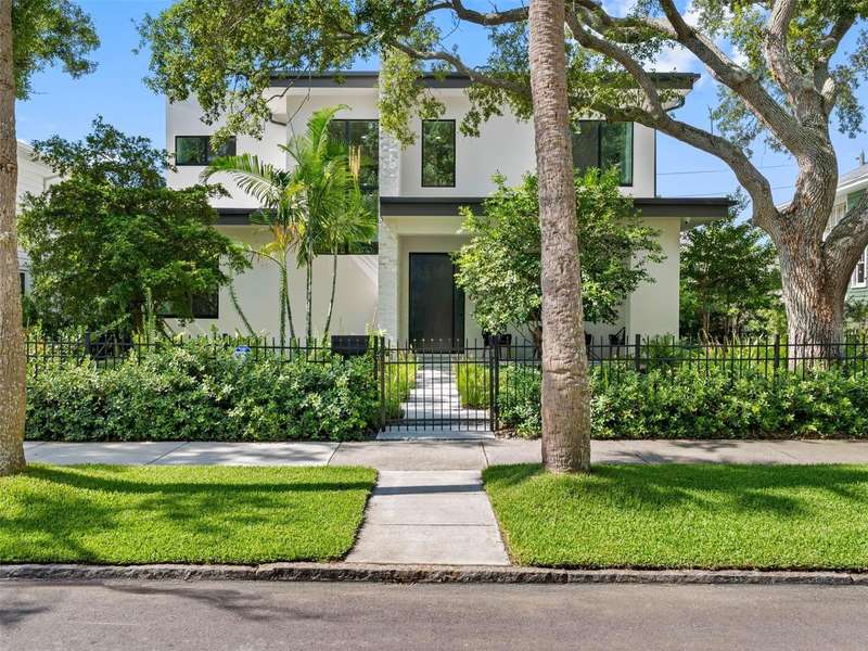 California modern nestled in the heart of all the charm and tradition of Historic Old NE.This 2023 solid block home with steel trusses/framing enveloped in Icynene insulation is built to stand strong and still be eco friendly.Solar panels generate enough electricity to run the house and 2 electric vehicles with the minimum Duke charge. The verdant, xeriscaped yard, leads up a modern path to the grand, pivot door. Inside, polished concrete floors seamlessly give a clean, modern aesthetic with a palette of brown woods, black, and brass. Nine foot sliding doors surround the courtyard, opening the entire first floor to a screened, private sanctuary surrounded by lush greenery.The gathering room with 11’ ceilings, and a linear fireplace that gives year round ambiance, is just far enough away from the kitchen to give it a luxurious feel but still part of the action.The kitchen overlooks the courtyard with floor to ceiling custom oak cabinetry.Everything is expertly designed to give gracious amounts of counter space and storage.Monogram appliances include a large induction cooktop, dishwasher, and double oven with Advantium.The restaurant sized fridge and freezer tucked in the large pantry not only give you the most food storage possible but also allow for ease of organizing and placing groceries. Rich black granite with brass veins hugs a massive waterfall island and deep sink.The wet bar, with reverse osmosis system, beverage cooler and reeded glass cabinetry make this the perfect conversation area.The pool bath opens to the courtyard truly making this inside/outside living year round.The courtyard and pool area continue maintenance free living with soft turf, an eight person jacuzzi and the ability to heat the pool and jacuzzi with solar. Completing the ground floor is a flex space currently used as a media room with surround sound system that could also be an office, gym or playroom. The entire ground floor has a Sonos sound system. The floating staircase is a work of art leading to the second floor, with solid oak treads, glass railings and steel beams. Immediately at the top, is a large laundry room with GE profile graphite appliances, a deep sink, long quartz counter and upper and lower cabinets. The entire second floor is clad in a rich hued, wide oak plank. The private, primary suite has an exceptionally large walk-in closet, and spacious light-filled bath with floating oak cabinetry,Italian terrazzo walls, and seamless porcelain flooring that give the juxtaposition of old and new. Two additional bedrooms, with pool or treetop views, sized for king beds, have custom closet systems and a bathroom that pays homage to the sidewalks of Old NE with hex tile, Oak cabinetry and brass and black accoutrements. The guest house has a bedroom, full bath, kitchenette, living room, and is one of best spaces on the property. A West facing balcony is the perfect sunset aperitivo spot. A three car garage with alley access, a fenced yard and security cameras are a few of the extras. Walk three blocks to the water and enjoy the third largest waterfront park system in North America with sand volleyball, pool, playgrounds, the beach, live music, art and food festivals and amazing sunrises. A mile stroll will have you in the buzzing downtown scene. A bike ride or walk is great way to get to all that downtown offers-museums, shopping, restaurants with Michelin nods, the Saturday Market,Grand Prix and the magnificent Pier.