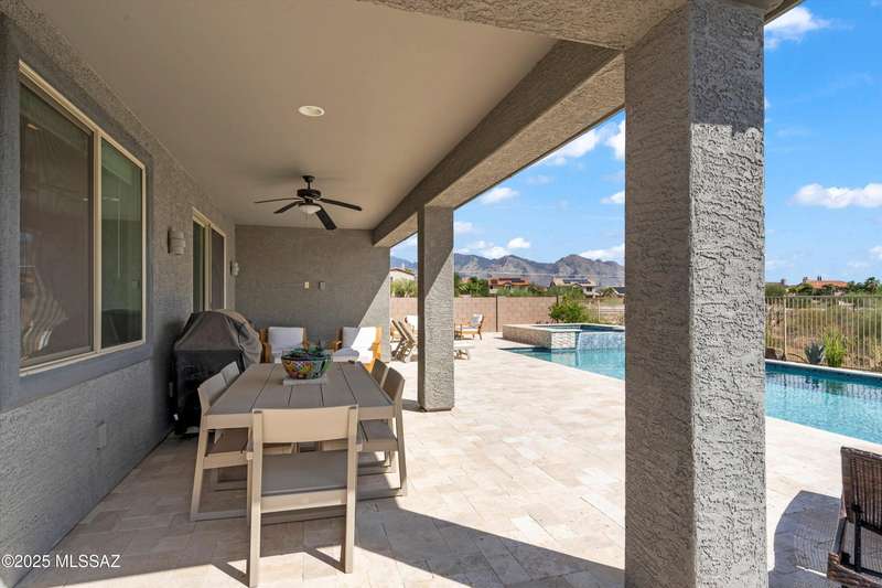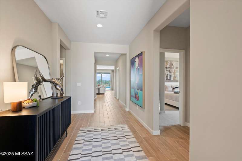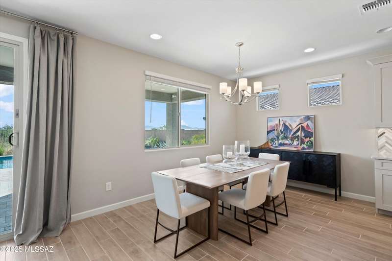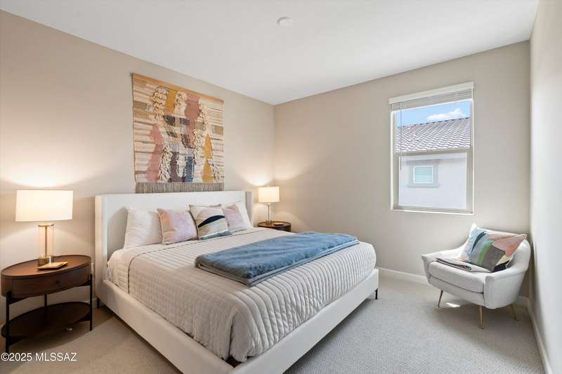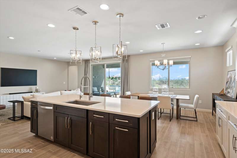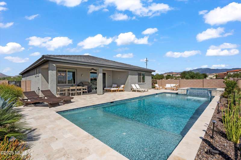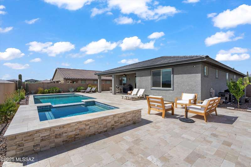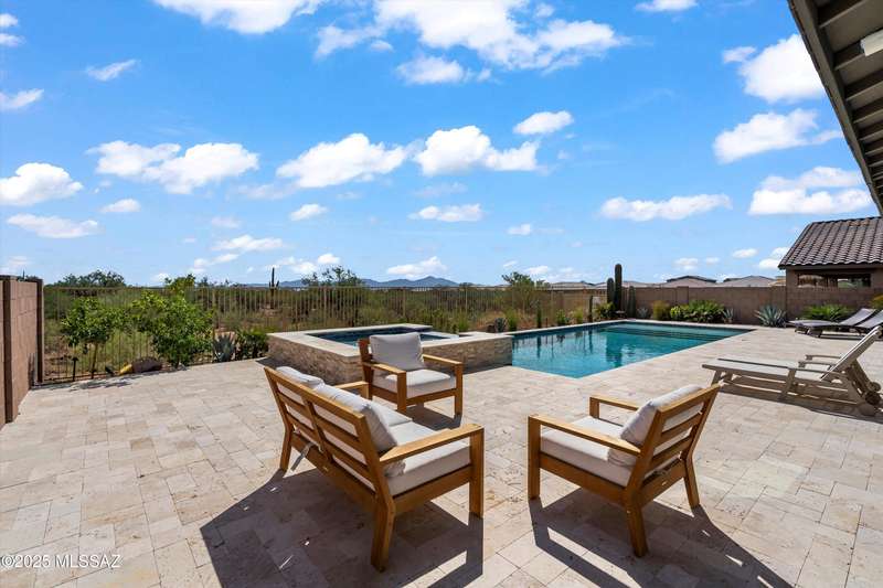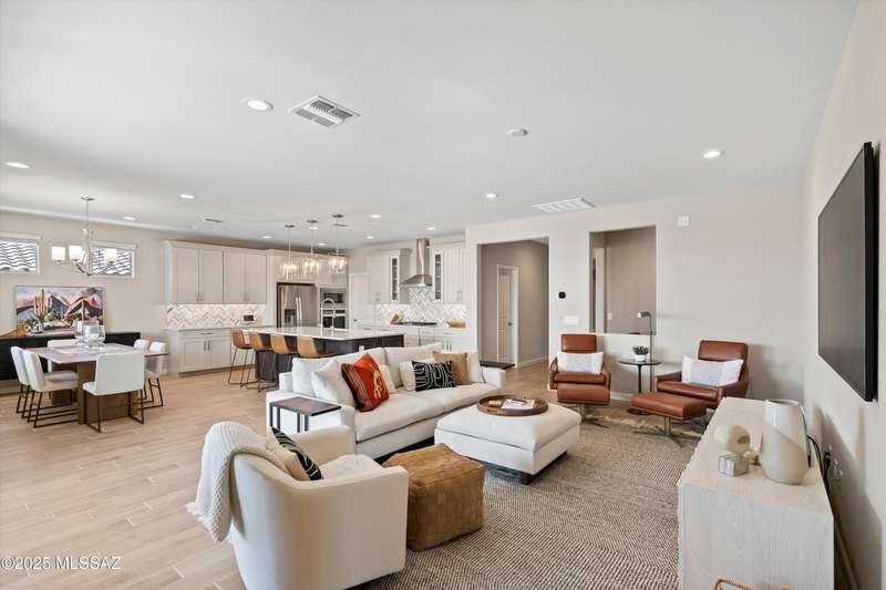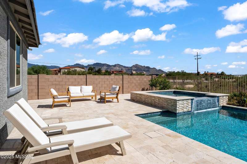 Welcome to luxury desert living in the gated community of Saguaros Viejo East in Oro Valley! This immaculate 3BD/2.5BA home with a den (easily a 4th BD) offers 2,300 sq ft of thoughtfully designed space. Built in 2023, the home showcases a modern, elegant palette and pristine condition throughout. Step into the open-concept Great Room that seamlessly connects the living, dining, and chef's kitchen areas--perfect for entertaining. The kitchen is a culinary dream with high-end finishes, abundant cabinetry, and an adjacent office niche for convenience. The spacious primary suite is a private retreat, featuring a spa-like bathroom with dual vanities, a walk-in shower, and a generous walk-in closet. A split floor plan ensures guest privacy, complete with a full bath. Enjoy Arizona living