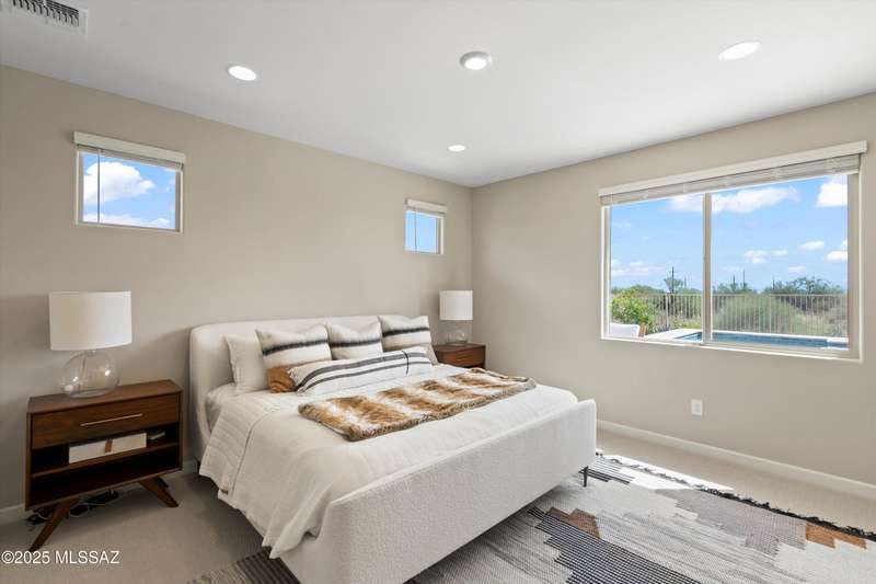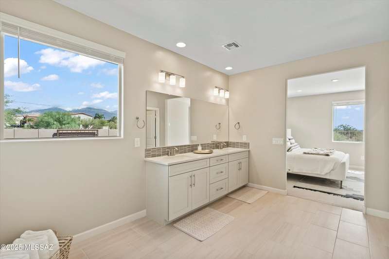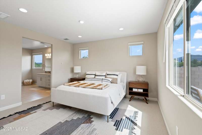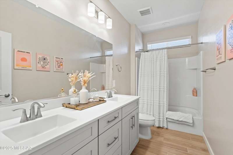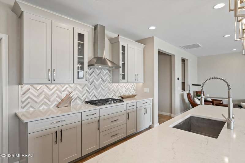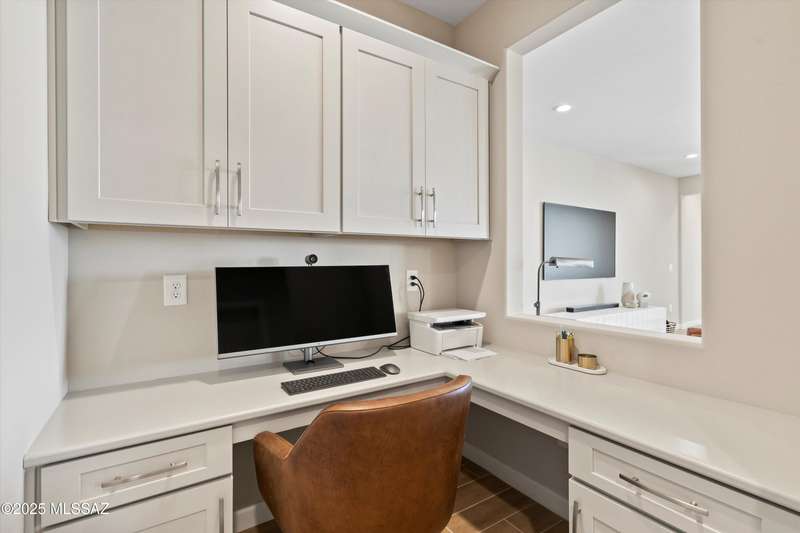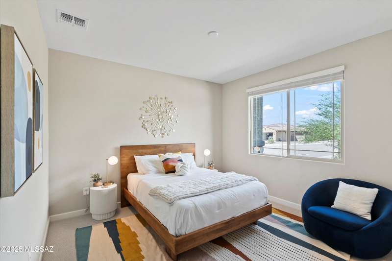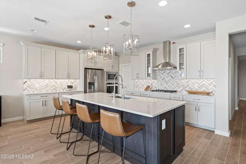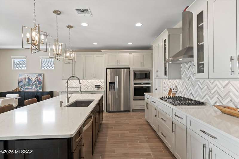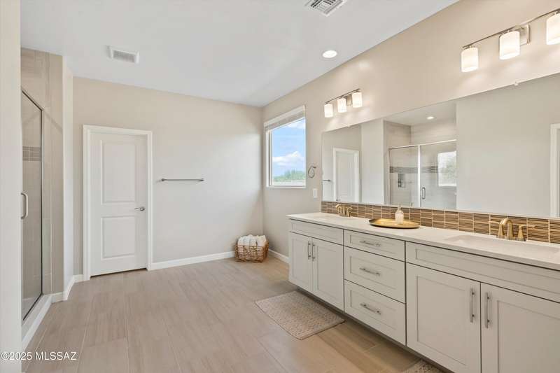 Welcome to luxury desert living in the gated community of Saguaros Viejo East in Oro Valley! This immaculate 3BD/2.5BA home with a den (easily a 4th BD) offers 2,300 sq ft of thoughtfully designed space. Built in 2023, the home showcases a modern, elegant palette and pristine condition throughout. Step into the open-concept Great Room that seamlessly connects the living, dining, and chef's kitchen areas--perfect for entertaining. The kitchen is a culinary dream with high-end finishes, abundant cabinetry, and an adjacent office niche for convenience. The spacious primary suite is a private retreat, featuring a spa-like bathroom with dual vanities, a walk-in shower, and a generous walk-in closet. A split floor plan ensures guest privacy, complete with a full bath. Enjoy Arizona living