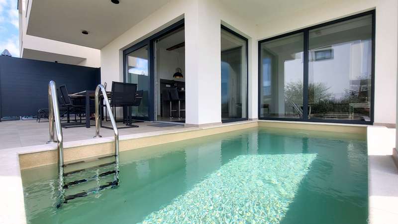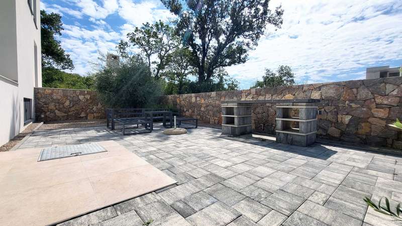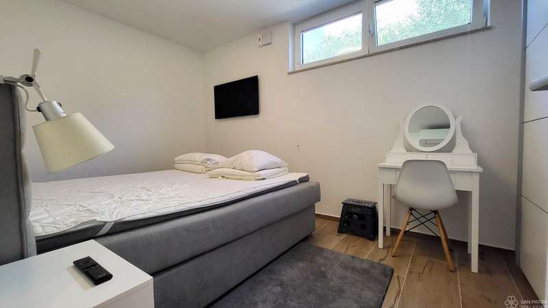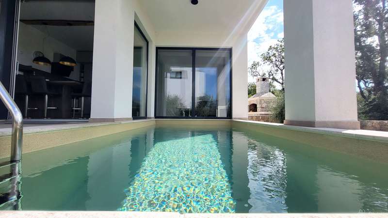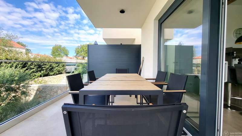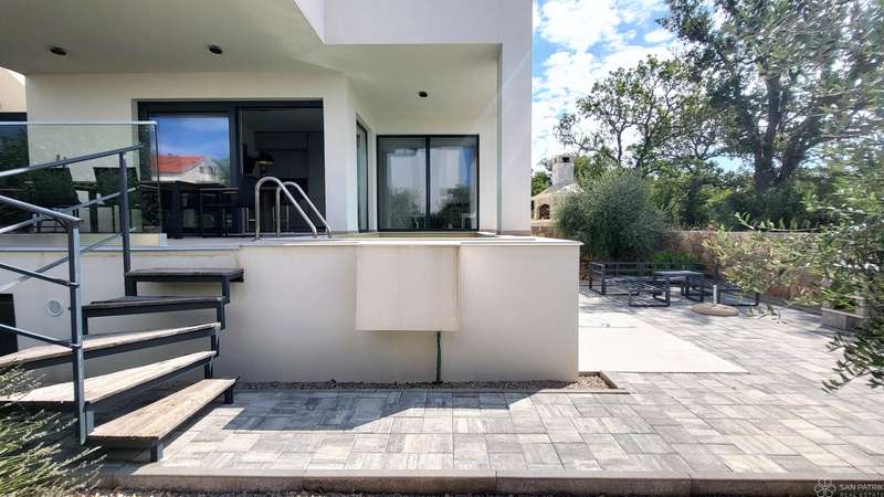 Apartment Njivice - basement + high ground floor - living area 118 m2 (3 bedrooms + 2 bathrooms) + 1 terrace + swimming pool + garden 108 m2 + 2 outdoor parking spaces = 395,000 EUR (with furniture included)