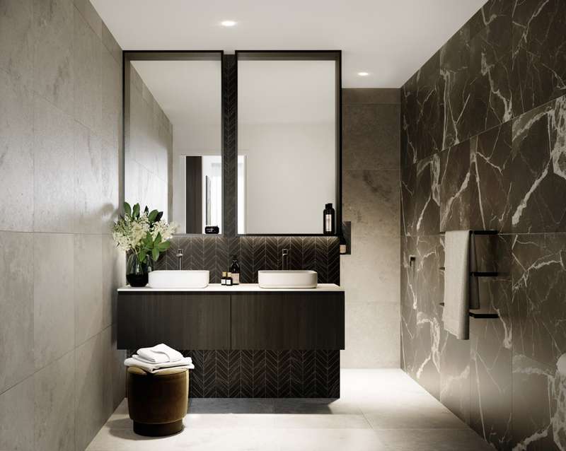 The kitchen boasts a scullery and has been holistically designed to complement the contemporary vision of the apartments. The combination of full height cabinetry, porcelain tile benchtops and premium appliances complement this refined aesthetic.
