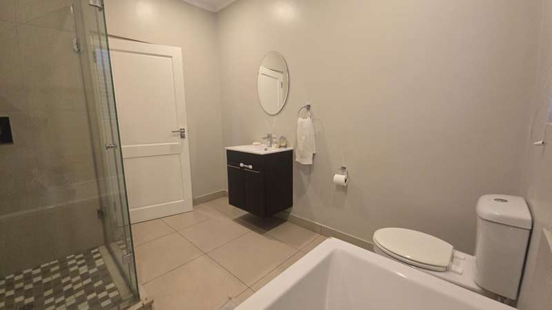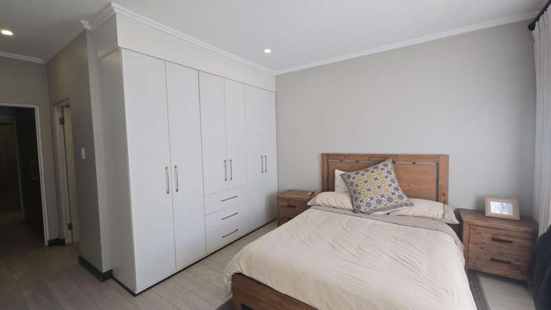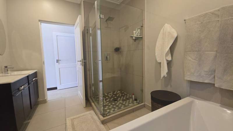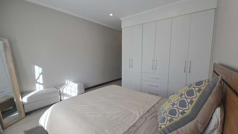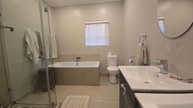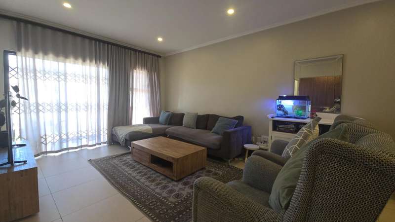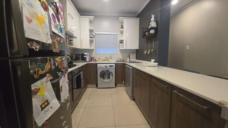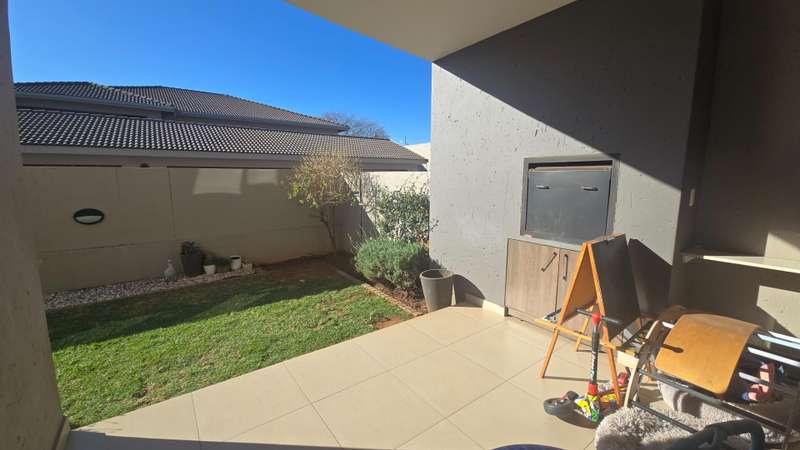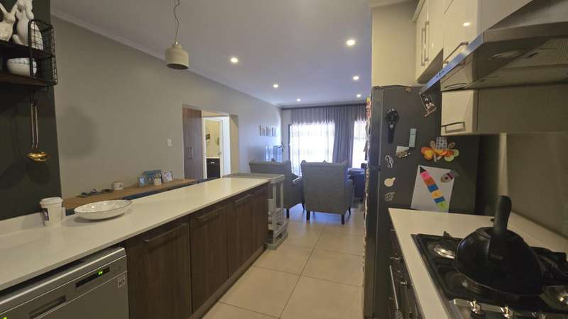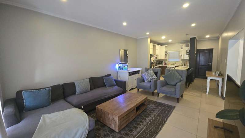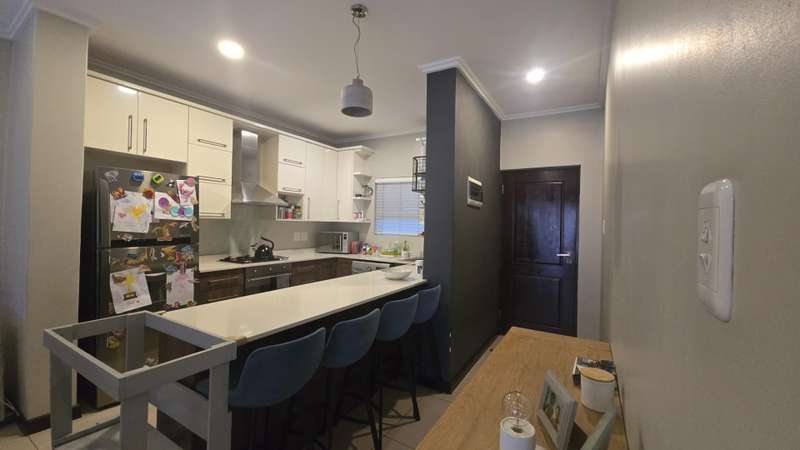 Luxurious 2-Bedroom, 2-Bathroom Garden Simplex Step into this stunning 2-bedroom, 2-bathroom garden simplex, offering luxury and comfort in a secure setting. The entrance hall leads you to an open-plan modern kitchen that is equipped with a gas stove and space for two appliances. Perfect for quick morning meals, the breakfast table adds to the convenience. The kitchen boasts ample built-in cupboards (BIC) and is elegantly finished with Caesar stone countertops. The open-plan lounge and dining area flow seamlessly to a covered patio, overlooking a beautifully landscaped garden. The two well-sized bedrooms are fitted with ample BIC and wood laminate flooring, providing a warm and cosy atmosphere. Each bedroom is complemented by a modern bathroom, both featuring a shower and a bathtub for ultimate comfort. Enjoy the convenience of a double automated tiled garage with additional BIC for extra storage. Situated in a small complex on a gated street with 24-hour security, this home offers peace of mind and exclusivity. Pet friendly complex. Make this luxurious garden simplex your new home and experience the perfect blend of style and functionality.