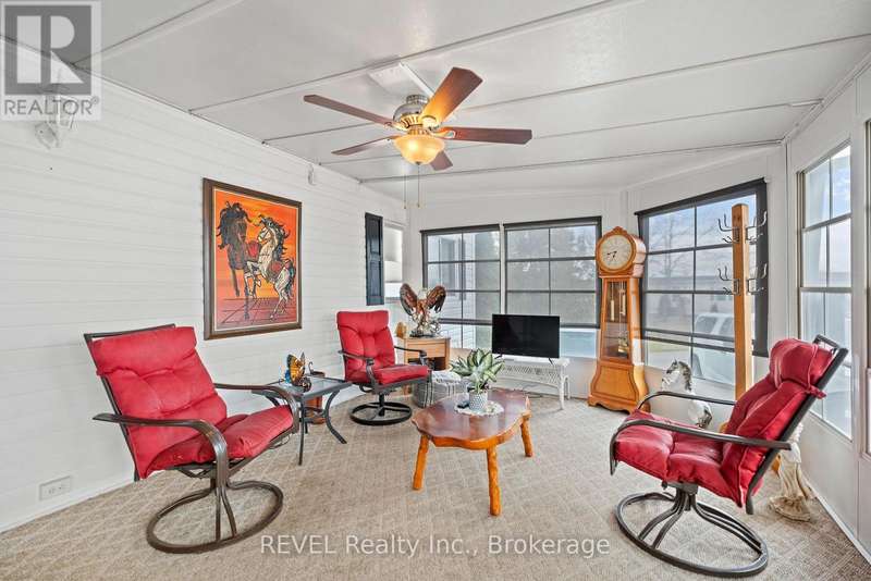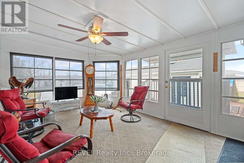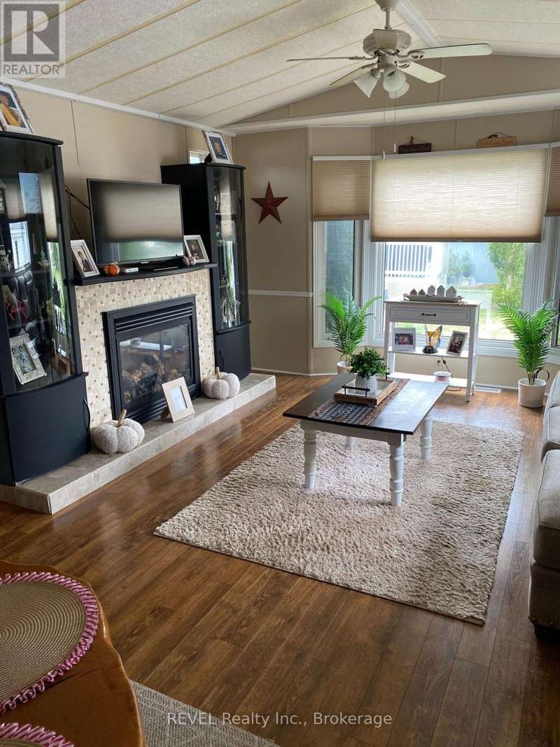 Welcome to 350 Marsh Lane. A rare find with extras which include; large detached (24x20) 2 car garage, triple wide paved driveway, & 2 sheds, (one with electricity) and an extra-large lot with lovely landscaping. Spacious one floor living with two bedrooms, two bathrooms, living room w/fireplace, family room plus large bright 3 season sunroom and main floor laundry. New owned HWT, October 2025. Major rooms freshly painted. 350-3033 Townline Rd located in the Park Bridge Black Creek adult Lifestyle Community where residents enjoy incredible amenities which include clubhouse, indoor & outdoor pools, tennis court, sauna, shuffleboard &woodworking shop. Weekly activities include billiards, darts, yoga, bingo, poker, line dancing and more. This living incorporates independence coupled with convenience and support and located in a serene nature setting with mature trees and meandering creek. Monthly fees $955.44 per month and include land lease and taxes. Quick access to QEW, 12 min to U.S. border. (id:7434)