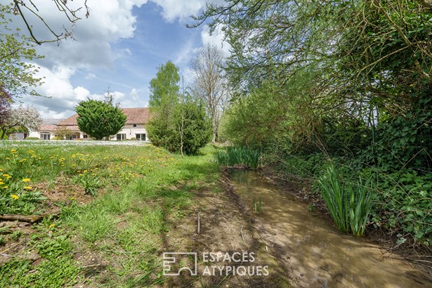 The outside spaces are just as attractive. The vast garden bordered by a stream invites you to relax and enjoy the great outdoors. A stream runs through the property, adding a touch of nature and serenity. The outbuildings, including a workshop and offices, offer a variety of possibilities for professionals wishing to combine work and personal life. Water and heating are provided by geothermal energy from 3 wells. The immediate environment is pleasant, with schools and shops nearby, making everyday life a breeze.