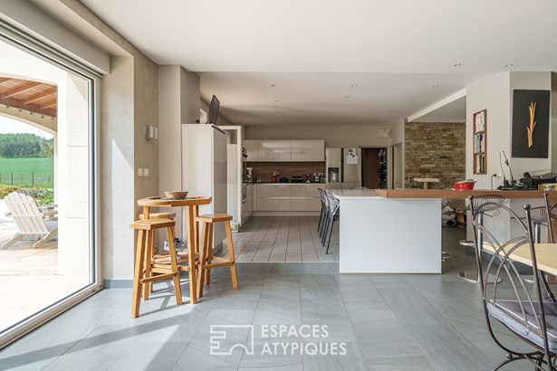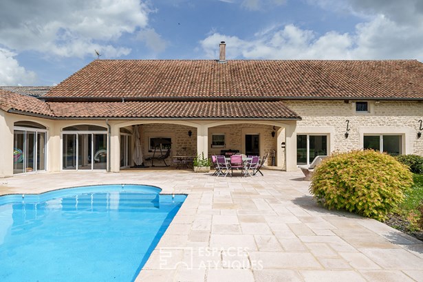 Inside, the house features an attractive layout of rooms, providing plenty of light and comfort. The ground floor features a fully-equipped kitchen opening onto a vast 120 m2 living room, providing a convivial space for spending time with family and friends. The three bedrooms, including a master suite with en suite bathroom and shower room, are designed to ensure privacy and tranquillity. A spa area, laundry room and cellar complete the property. The 250 m2 attic can easily be converted to create a second home or work space. Architectural features such as the stone walls and bay windows add a touch of authenticity to this property.