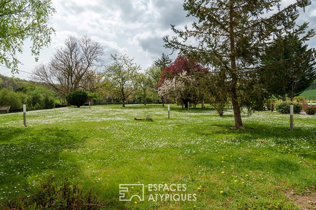 Nestled on the outskirts of a village just 10 minutes from Commercy and Saint-Mihiel, this character house is a former oil mill that was renovated in the 1990s to create a unique and atypical living environment. With 319 m2 of living space on one level, it sits in 71 acres of lush, green grounds with a swimming pool and orchard, and also has outbuildings ideal for a professional activity.
