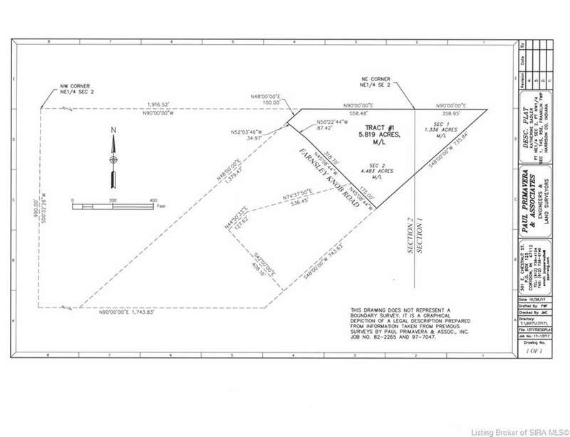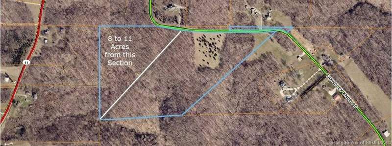 Beautiful wooded lot with option for 8-11 acres, in award winning Floyd Central School district. Priced at $17,500 an acre. Property is in Floyd County, Town of Elizabeth. Buyer to pay for survey of desired acres to purchase, which will be split off from the left side of property's current survey and as pictured. Surveyor will create the right side boundary. Approximately 100 ft of road frontage. Beautiful opportunity to build your dream home or private hunting land. Water and electric at the road. No HOA. Parcel number and acres will be assigned after recording of deed. Property is currently zoned as Classified Forest. More information on classification can be found by searching Indiana Government Classified Forest Programs. Property is on the left side of Farnsley Knob between 6171 and 6681 and across the street from 6500. Property address is from the county (and previous property lines) and not accurate.