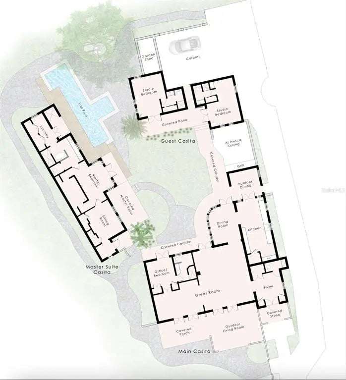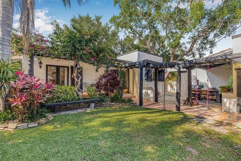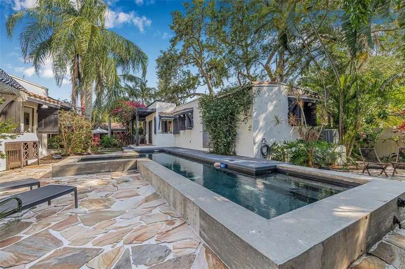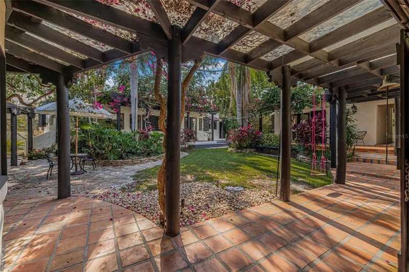 Welcome to Hacienda Miramar – A Private Resort-Style Sanctuary in Prestigious Snell Isle. Step into the pinnacle of refined, resort-style living at Hacienda Miramar, a rare architectural masterpiece located in the coveted enclave of Snell Isle in St. Petersburg, Florida. Poised on an expansive and meticulously landscaped 1/3-acre lot, this exceptional estate offers unmatched privacy and seclusion—an increasingly rare luxury in today’s world. Evoking the timeless elegance of California’s Spanish Colonial Mission architecture, this bespoke residence is a true private oasis, expertly crafted for those who seek both distinction and tranquility. Surrounded by lush ornamental bougainvillea and enhanced by the gentle, balmy breezes of nearby Tampa Bay, the grounds transport you into a world of Mediterranean-inspired serenity. Hacienda Miramar spans over 5,700 square feet of combined indoor and outdoor living space, artfully designed across three separate casitas. Whether you are entertaining, working remotely, or simply enjoying leisure, this flexible and thoughtfully configured estate offers a lifestyle of effortless luxury. The MAIN CASITA serves as the heart of the home, welcoming you with a grand foyer that leads into a sun-drenched great room and elegant dining area. A chef’s kitchen, featuring top-of-the-line commercial-grade appliances and custom cabinetry, is perfectly positioned for both grand-scale entertaining and intimate evenings at home. Outdoor living is elevated to an art form with a newly installed summer kitchen, a covered dining terrace, and captivating views of your own resort-style grounds, including a heated lap pool and private Sandstone Mosaic walking paths. From sunrise coffees to sunset dinners, every moment spent in this lush sanctuary is infused with peace and sophistication. The OWNER’S CASITA, your personal retreat, is a sanctuary unto itself—tucked just beyond the central courtyard and accessed through custom French doors and a pergola-covered veranda. This serene space includes a generous walk-in closet, spa-inspired bathroom, private laundry room, and an inviting sitting area. An outdoor shower with a view of the pool offers a unique opportunity to reconnect with nature in total privacy. The GUEST CASITA, located at the north end of the courtyard, offers versatile accommodations ideal for visiting family, live-in staff, a home office, or creative studio. With two expansive en suite bedrooms, guests or residents enjoy complete autonomy and comfort. This exquisite estate offers the rare opportunity to own a slice of Mediterranean-inspired paradise in one of Florida’s most desirable waterfront communities. Whether you are an international buyer seeking a sun-soaked escape, a discerning investor, or a global nomad in search of a permanent haven, Hacienda Miramar is ready to welcome you home. Inquire today to schedule your private tour of this singularly stunning property.