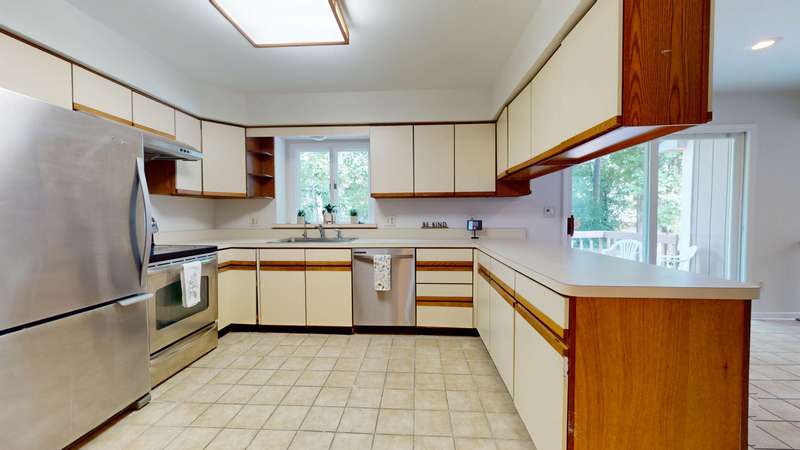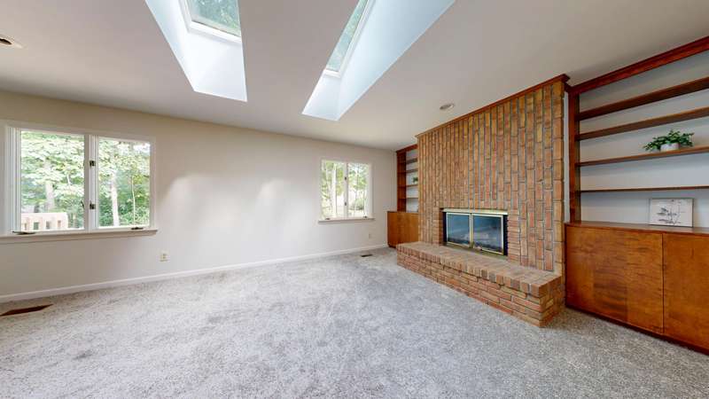 Freshly painted inside with new carpet, this inviting Landau contemporary is tucked on a quiet court in the desirable King Elementary and Clague MS district. The vaulted family room showcases skylights, a brick wood-burning fireplace, and built-in bookshelves, opening to a two-tier deck overlooking the private wooded yard. The main level offers a 4th BR with closet that doubles as a study, spacious living and dining room, an eat-in kitchen with stainless appliances, and convenient laundry. Upstairs are 3 BRs and 2 full baths, including a generous primary suite with ample closet space. The finished basement adds a recreation area with wood-laminate flooring, a full bath, and a storage room. Recent updates include a roof replacement and furnace (2020), water heater (2024), dishwasher (2023), and front-loading washer and dryer (2024). A short walk to King School, neighborhood park, shopping, North Campus, and US-23. Move-in ready with opportunity to update kitchen and baths. HERD Score 4