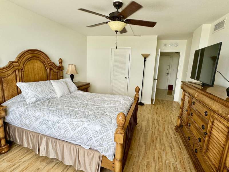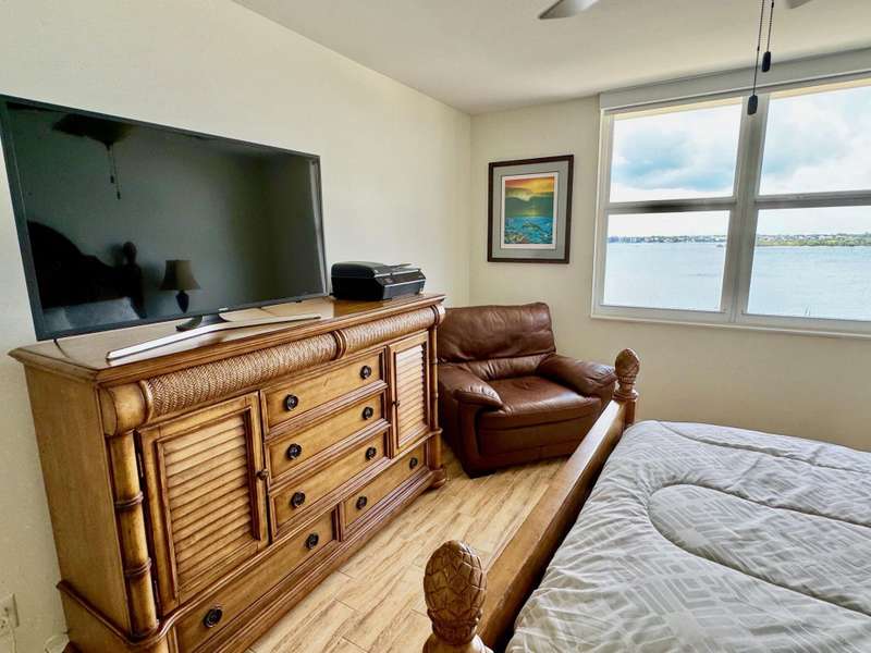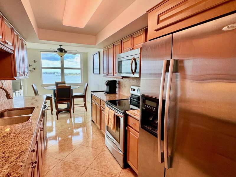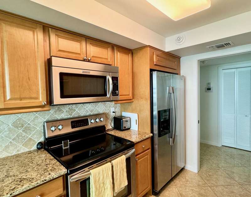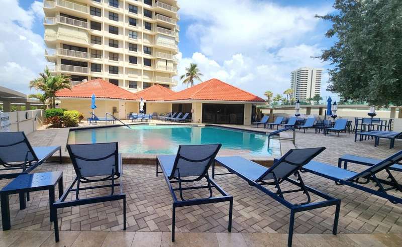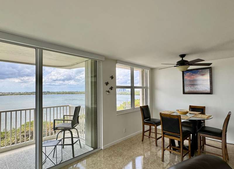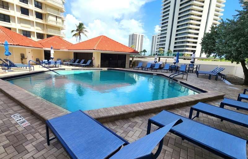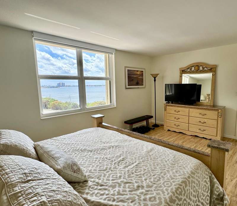 Lovely Season 2026 5th floor corner unit w panoramic Intracoastal & sunset views, & the reflection of city lights across the wide waterway. Monthly cleaning service included. ABSOLUTELY NO SMOKING ANYWHERE. This remodeled condo includes a split BR floor plan, updated kitchen w/granite countertop, stainless steel appliances, double door refrigerator & custom cabinetry. Electric shades. Both bedrooms have adjustable bed, walk-in closet, tv, & water view. Separate dining area with great views. 2 parking spaces - B5C covered & #29 open assigned. Shared free laundry on each floor, adjacent to unit. Amenities include a heated pool between 2 Towers, residents clubhouse w/party catering facilities, sauna, fitness area + BBQs. Enjoy direct beach access thru private beach walkover.