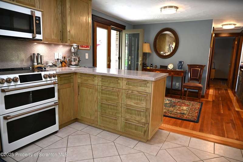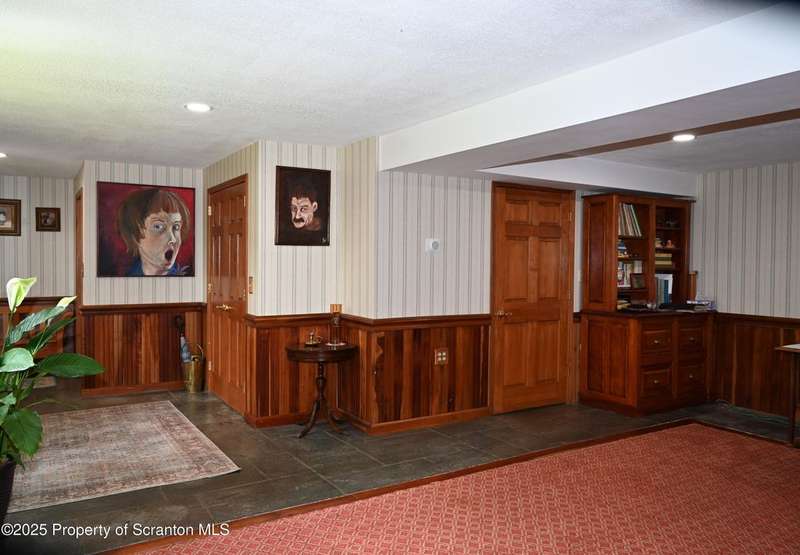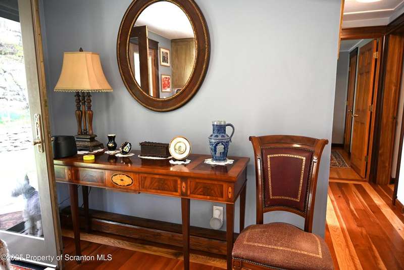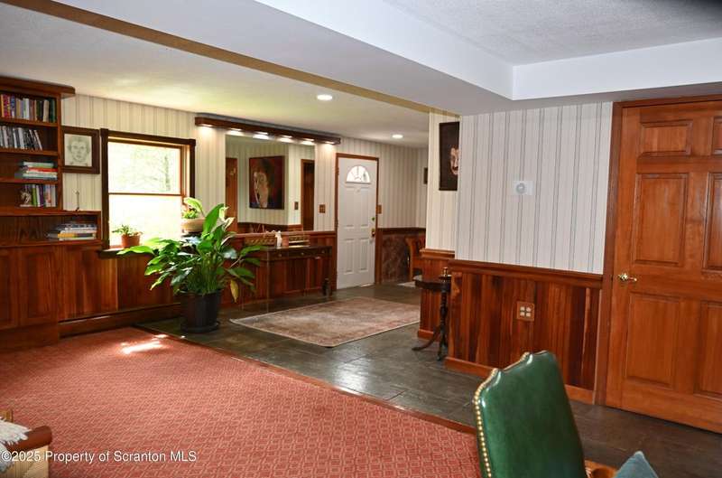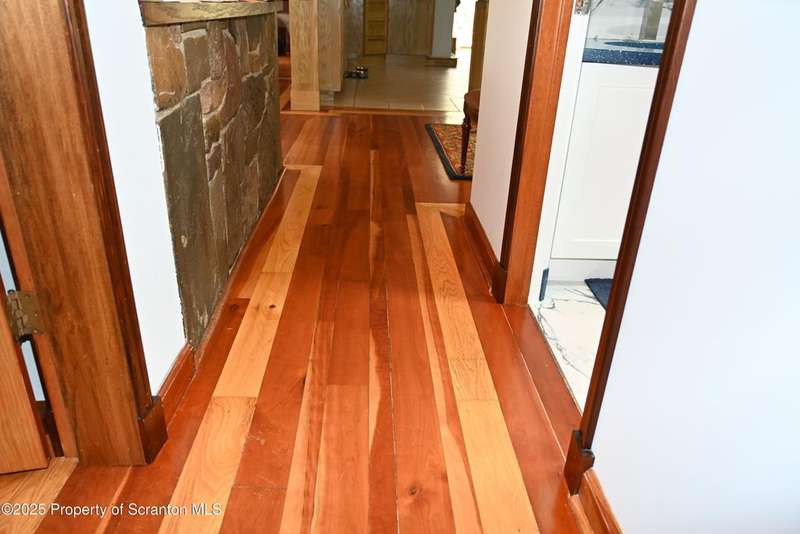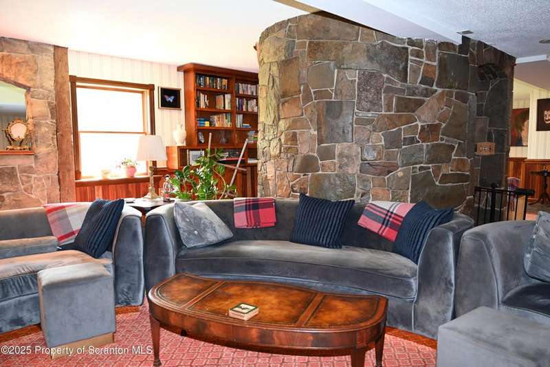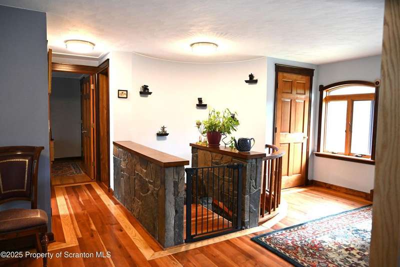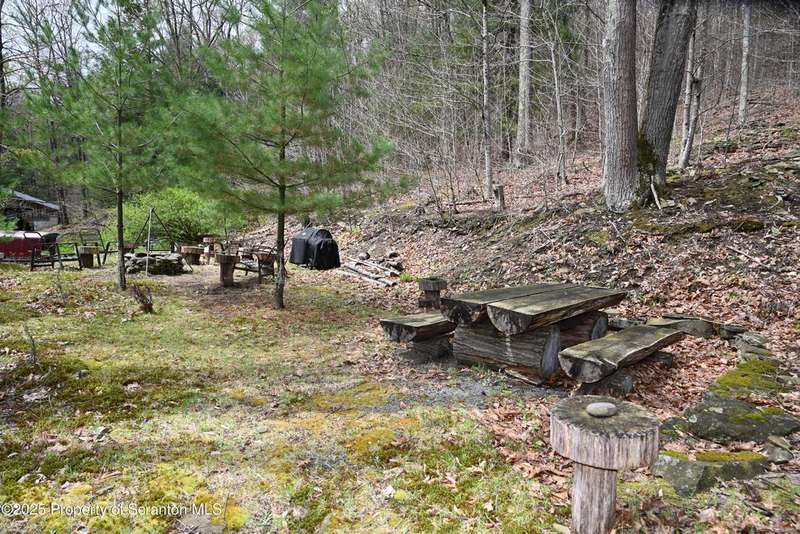 Nestled on over 9 acres of mostly wooded land, this exceptional property offers a rare blend of privacy, quality craftsmanship, and modern comfort. From the moment you arrive, you'll be captivated by the professionally built Brick with Stone House, featuring a welcoming stamped concrete sidewalks & patio perfect for outdoor relaxation and entertaining. Step inside to discover a home meticulously maintained and thoughtfully updated. The heart of the home boasts a custom-made kitchen, featuring beautiful red oak cabinetry, complemented by gleaming cherry and red oak floors that flow throughout the main living areas. Enjoy the luxury of 3 bedrooms & 2 1/2 brand new bathrooms & a custom laundry room with a convenient pocket door. The inviting peaceful family room and Library located in the finished lower level has new carpet that offers a cozy retreat with a fireplace as its centerpiece. A gorgeous circular stone staircase adds a touch of elegance as it gracefully leads you to the main floor. Beyond the main residence, discover a haven of outdoor amenities. Relax and rejuvenate in the outdoor sauna, cultivate your green thumb in the greenhouse, or gather around the fire pit for memorable evenings under the stars. The property features added fruit trees and thoughtful landscaping, enhancing its natural beauty. For the hobbyist or those needing extra space, there's a two-car detached heated garage currently a Wood working shop with the potential for a mother-in-law suite above, offering flexible living arrangements. Peace of mind comes standard with a whole house generator, updated electrical, septic, and a brand new roof and gutters.Heating is efficient and cost-effective with an outdoor wood furnace or hot water baseboard. Property has quality custom woodwork throughout, a testament to its enduring construction. Located just minutes away from I-81, This remarkable property has been refurbished and is move in ready with $100,000+ of renovations, OGM do not convey