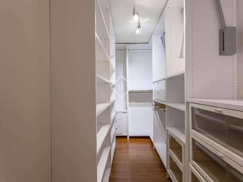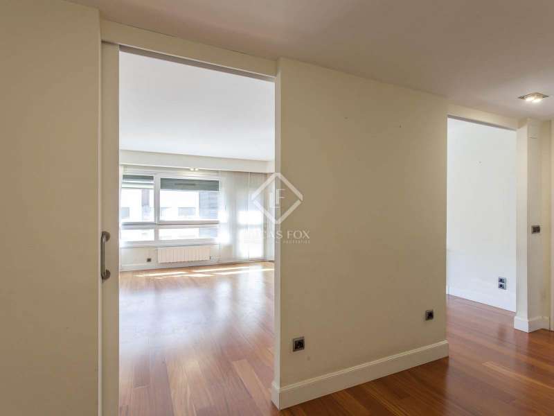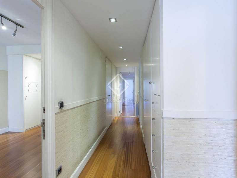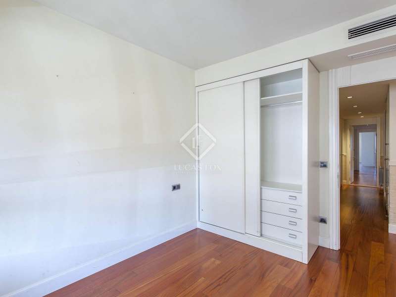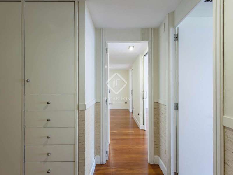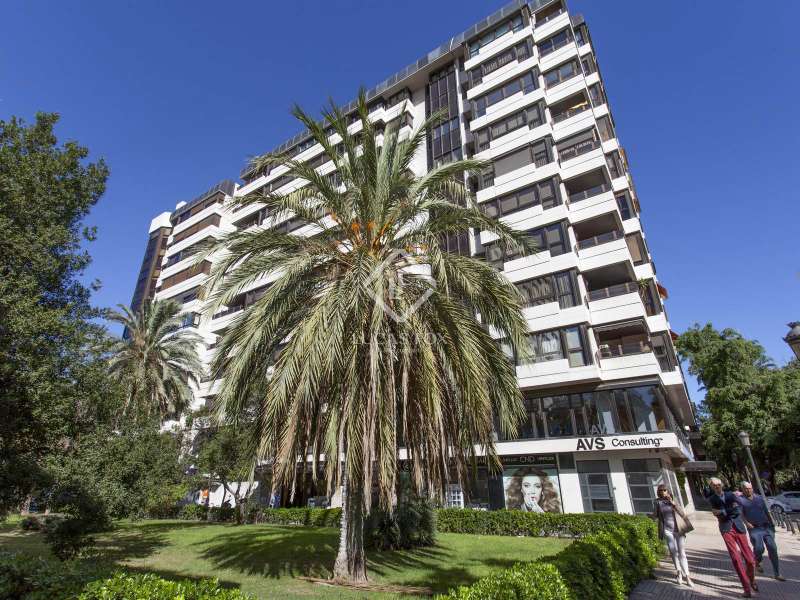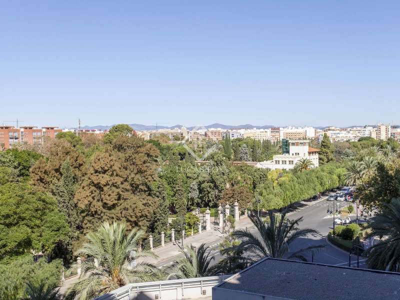 On the fifth floor of a stately property with a concierge service, we present this spacious and bright home that enjoys beautiful views of the Viveros garden. A spacious hall separates the bright living-dining room with access to a southwest-facing balcony from the separate, fully-equipped kitchen with a service door and a utility room with a clothesline. Next to the living room and with access to the balcony, we find a single bedroom and, following the corridor, a guest bedroom with a complete private bathroom. A guest bathroom with a shower completes the first area of the home. A secure door separates the day area from the night area. The latter has 2 double bedrooms, a complete bathroom, a separate dressing room and the bright master bedroom with a private bathroom and views of the gardens and hills. The entire property is equipped with fitted wardrobes, double glazed Climalit windows, heating by radiators and air conditioning by ducts. The price includes a garage space located in the basement of the building. An ideal apartment for large families and / or with service staff. Please contact us for more information or to arrange a viewing.