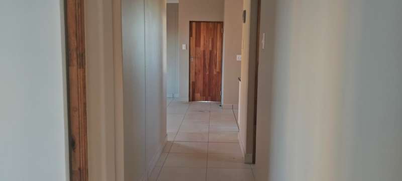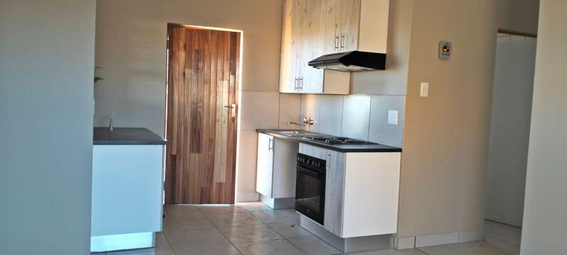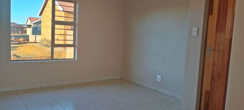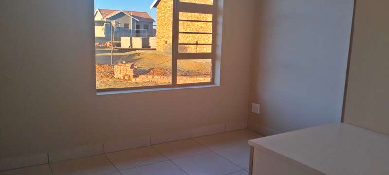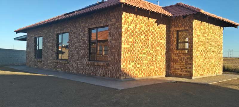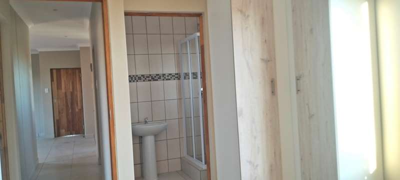 This modern 3-bedroom, 2-bathroom house is designed for comfort and convenience, perfect for family living or entertaining guests. The spacious layout features an open-plan living area that seamlessly connects the kitchen, dining, and lounge spaces, creating a welcoming atmosphere. Bedrooms: The three well-sized bedrooms come with built-in cupboards, providing ample storage while keeping the spaces tidy. Natural light fills the rooms through aluminium windows, enhancing the modern aesthetic. Bathrooms: The main bathroom is thoughtfully equipped with a basin, toilet, bath, and a shower rail, offering both functionality and comfort. The ensuite bathroom features a sleek shower, basin, and toilet, providing a private retreat for the master bedroom. Kitchen: The kitchen is designed for both style and practicality, featuring a breakfast nook perfect for casual meals. It includes built-in appliances like a stove and oven, making it a chef’s delight while remaining open enough for guests to gather around. Exterior: The property boasts a well-covered carport, ensuring secure parking for your vehicles. The yard is partially fenced, providing a sense of privacy while still being open to the neighbourhood. Energy Efficiency: A solar geyser adds to the home's modern features, enhancing energy efficiency and reducing utility costs. Additional Perks: As a new development, this property comes with the added benefit of no transfer fees, making it an attractive option for first-time buyers or those looking to invest in a modern home. Overall, this house blends contemporary design with practical living, ideal for today’s lifestyle.