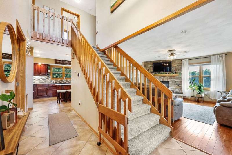 Beautiful! This well maintained one owner, 4 bedroom home that has been updated with the latest styles, sits on 37 acres & is surrounded by privacy, with over a mile of wooded walking trails. From every porch, patio, & window, you'll enjoy seclusion & breathtaking views. A long, winding driveway sets the tone for this private retreat, while the lower level offers a walkout, with rough-in for a bath, & garage access'ready for your personal touches. A versatile Cleary building-plumbed for water, is ready for animals or use as a workshop & storage. NOTE: This property has two parcel numbers: 0607-112-8501-7 and 0607-101-8036-4. Please include parcel #'s with any offers. See MLS Doc file for updates/ages and property information
