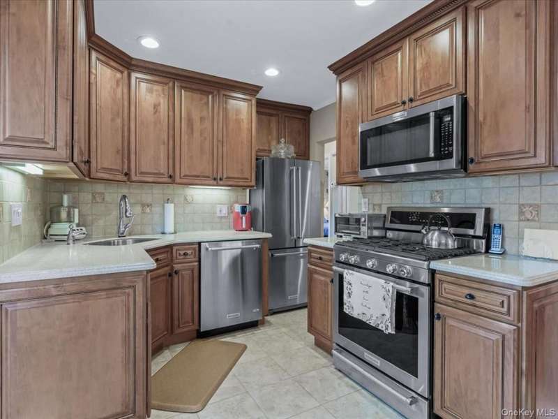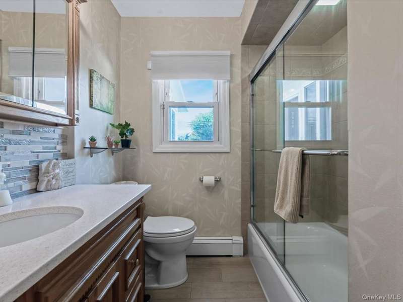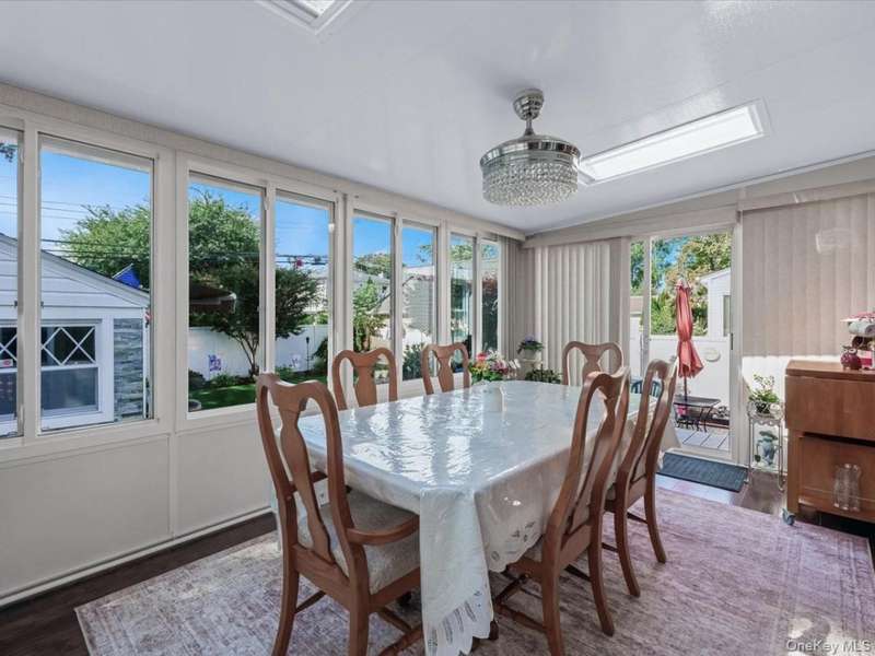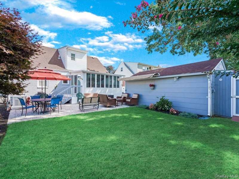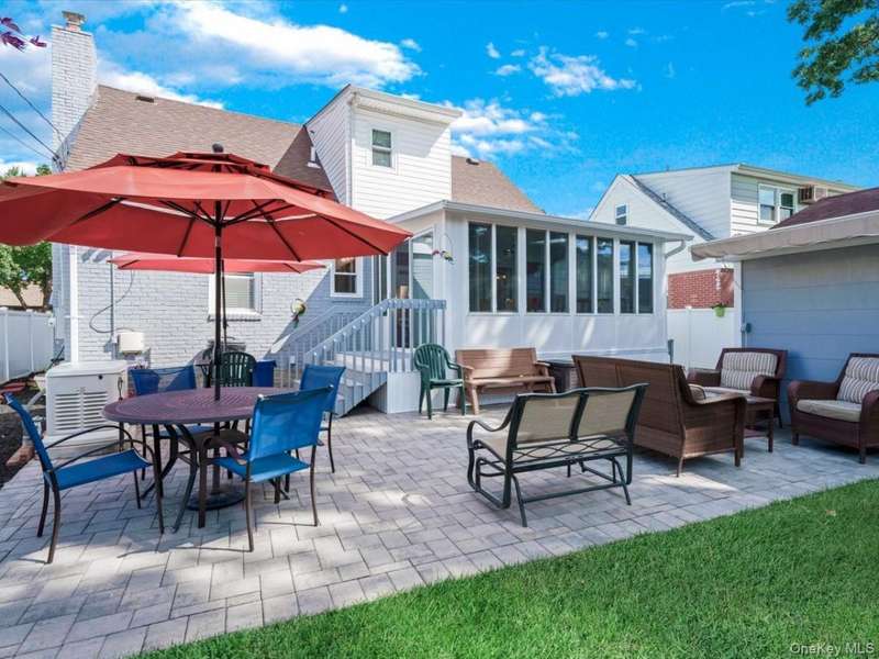 Welcome to this beautiful wide-line cape, ideally located on a quiet street in the Herricks School District, just steps from Park Circle. From the moment you arrive, the home's curb appeal shines with its meticulously landscaped yard, new stone facade, and custom pavers accenting the driveway, walkway, and patio.Inside, you'll find a bright and inviting living room, 4 spacious bedrooms, and 3 full baths. The updated kitchen features stainless steel appliances, while the sun-drenched 4-season room (additional 152 sq ft) offers the perfect space to relax or entertain year-round. A finished basement with egress window provides additional space and versatility.Other notable features include central air, a full-house Generac generator, 3-zone heating, a tankless water heater, updated electric panel, sprinkler system, floor drain backwater value, hardwood floors, and more. Conveniently close to shopping, dining, public transportation, and all neighborhood essentials, this home seamlessly combines comfort, style, and everyday convenience.