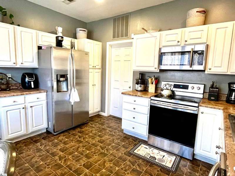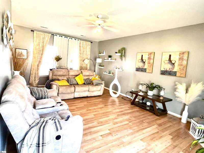 Make this your new HOME!!! Nice living room with a cozy fireplace and a very spacious kitchen, all appliances convey. Extra bedroom and a half bathroom downstairs, and great access to the patio and large fully fenced backyard! Upstairs you will find the Primary bedroom with a full bathroom and walk-in closet. Plus two bedrooms and a shared full bathroom, and the laundry area and extra closet space. Conveniently located close to Greenville, Mauldin and Simpsonville areas. Make an appointment to see it today!!!