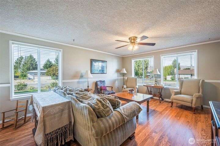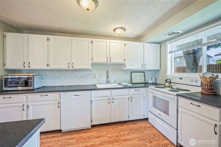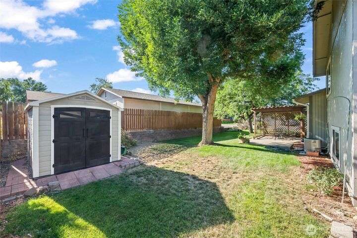 Well-maintained tri-level on a large corner lot. Excellent location near schools, shopping, parks, and services. 4 bedrooms, a living room, and a family room provide great space and separate living areas.Laminate wood flooring, gorgeous kitchen with white cabinets and tile backsplash. Chair rail & crown molding on the main floor. Spacious yard with a garden shed and pergola-covered patio. The current owner's care of this home will provide peace of mind to its future buyer. Exterior painted within the past 5 years. Newer central heat/air, dishwasher, and stove. All kitchen appliances included. Family room can be a 5th bedroom. Seller will replace stairway carpet.