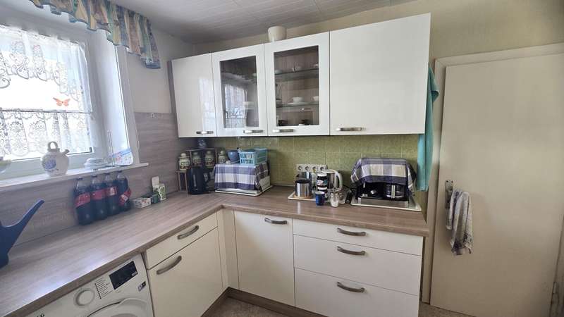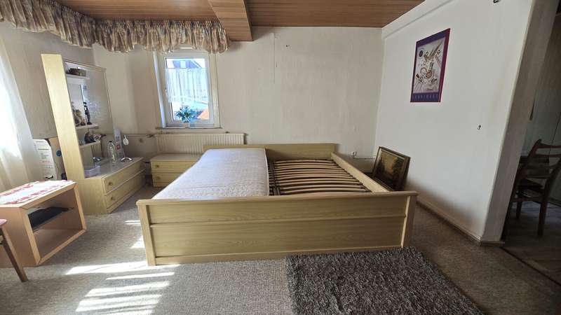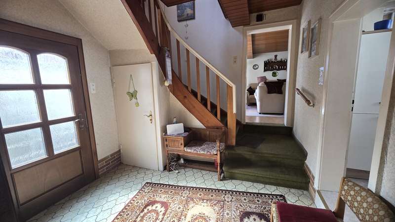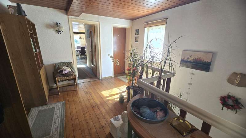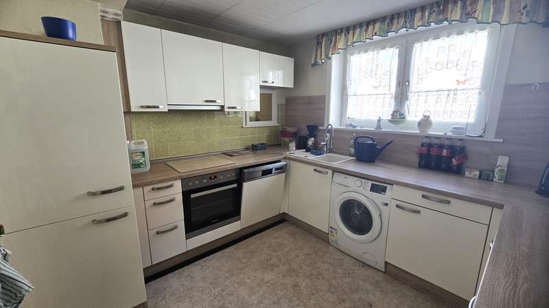 This spacious two-family house is located on a plot of approx. 971 m² in a quiet residential area and offers a living space of around 212 m², spread over two levels. The well-kept neighborhood with its detached houses creates a pleasant atmosphere in which both families and couples can feel completely at home. The inviting entrance area leads into the bright and spacious living and dining room, which has floor-to-ceiling windows to create a friendly atmosphere. Directly next to it is the modern kitchen with ample work surface, plenty of storage space and built-in appliances. A washing machine and dishwasher are also integrated here. An adjoining utility room with window offers additional space for supplies - practical and functional at the same time. The first floor also includes a spacious bathroom with a walk-in shower and a separate guest WC. There are four further rooms at the rear of the house: a dining room, a bedroom, an office and a light-flooded conservatory. A solid wooden staircase leads to the upper floor, which boasts three spacious rooms. The large bedroom offers enough space for a double bed, while the adjoining room is currently used as a dressing room. The daylight bathroom is also equipped with a walk-in shower and is generously proportioned. At the rear of the upper floor is an inviting living and dining room with a fireplace and access to a large roof terrace. The central heating provides pleasant warmth throughout the house. Both the well-tended garden and the sunny roof terrace invite you to spend relaxing hours outdoors. The outdoor area also offers enough space for play equipment or a small vegetable garden. The house was built using solid construction methods and is in a contemporary condition both technically and visually. All windows are double-glazed and contribute to a high level of living comfort and energy efficiency. A fast internet connection guarantees modern communication options. The location boasts an excellent infrastructure: shopping facilities, schools, kindergartens and numerous leisure activities are in the immediate vicinity. Public transport connections are also within easy reach. This two-family house offers a wide range of possible uses and individual scope for design. We would be happy to provide you with further information or arrange a personal viewing appointment. See the benefits of this attractive property for yourself.