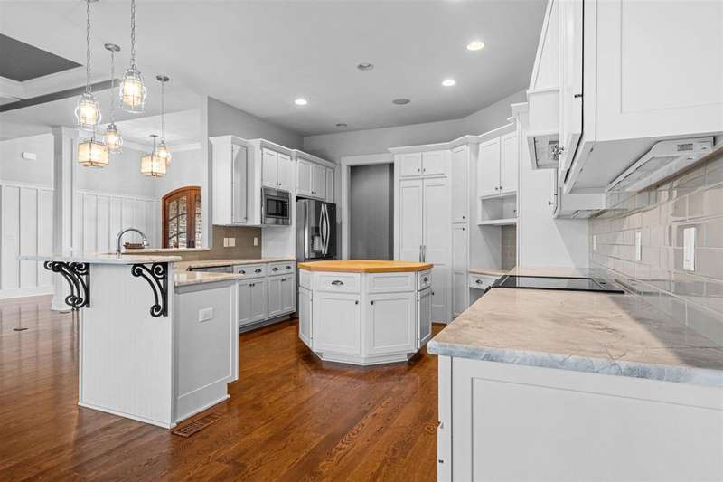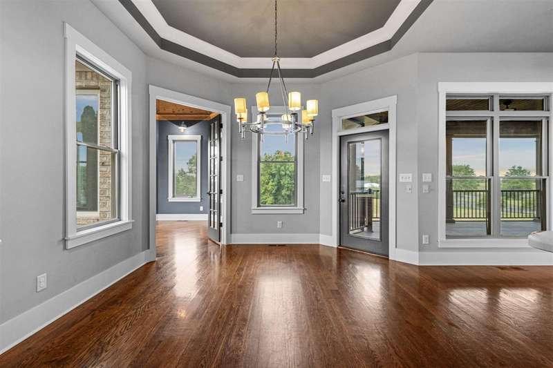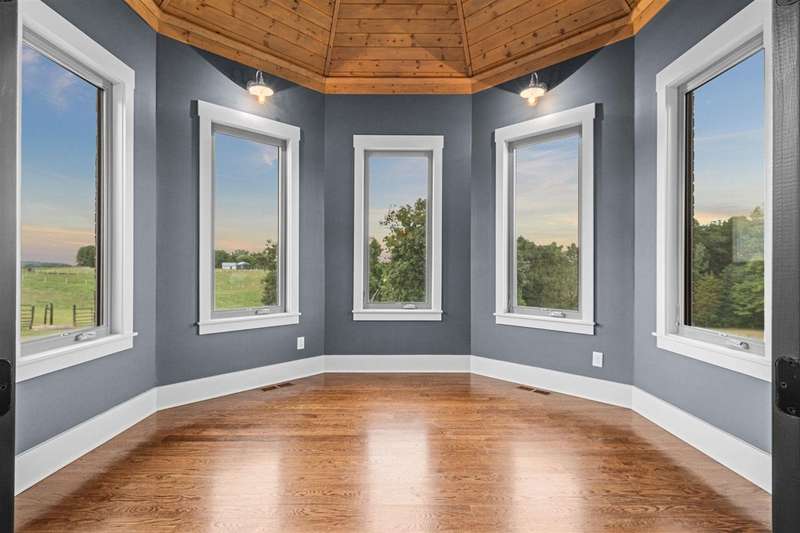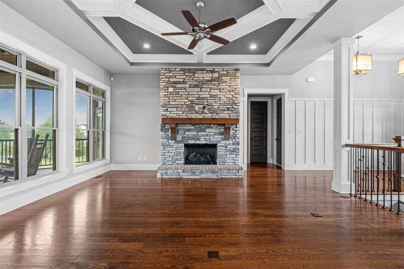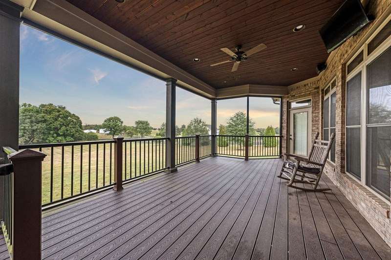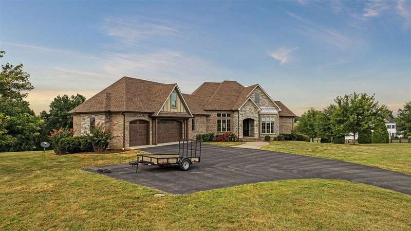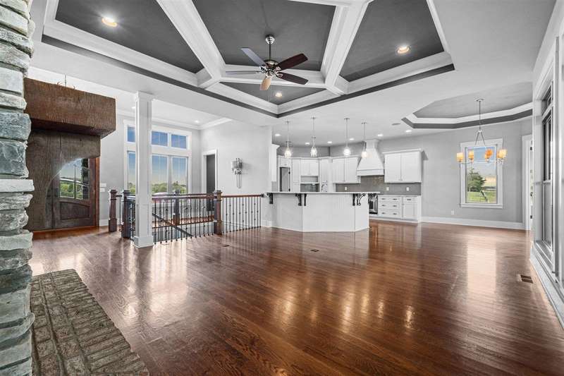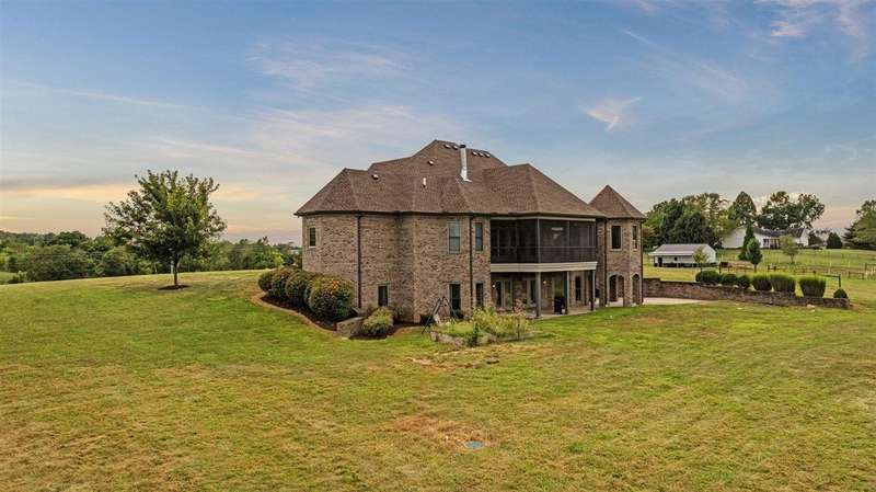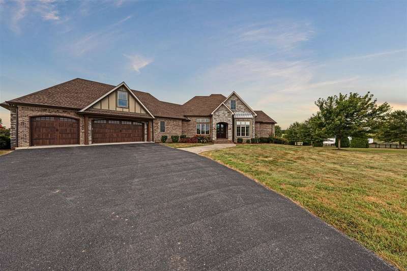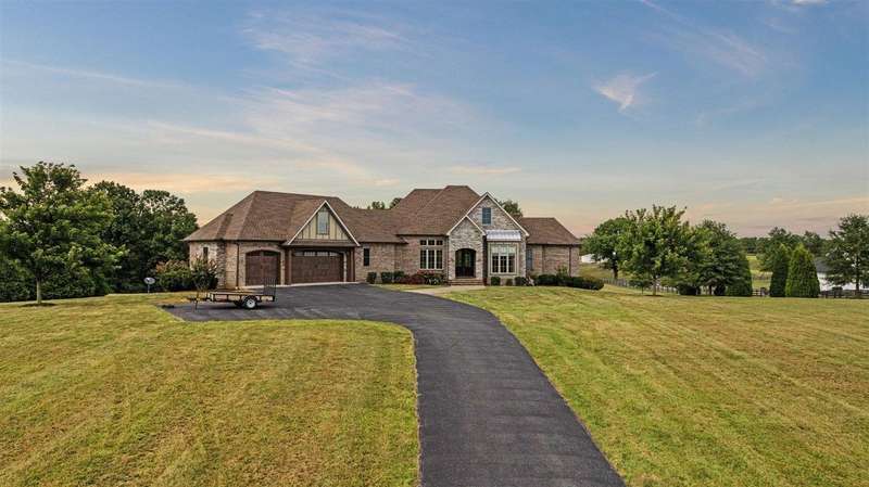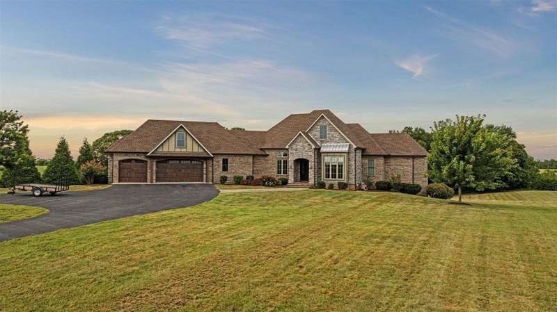 Nestled on 7 beautiful acres, this stunning 4-bedroom, 4.5-bath custom built home offers elegance, comfort, and functionality. A sweeping, spacious yard welcomes you to the property, providing plenty of room for outdoor activities, gardening, or simply enjoying the serene surroundings. Inside, the open-concept floor plan is filled with natural light and enhanced by thoughtful details such as coffered ceilings, designer selections and a cozy fireplace, creating a warm and inviting atmosphere. The kitchen is designed for both everyday living and entertaining, featuring a large walk-in pantry and easy flow to the dining and living spaces. The primary suite is a true retreat, complete with dual closets, a soaking tub, and a beautifully tiled shower. The fully finished walk-out basement expands the living space, offering a second kitchen, whole home surround sound system, and abundant storage. Perfect for gatherings or private guest quarters, this level provides flexibility for a variety of needs. Additionally the basement offers an extra finished space that can serve as a home gym, office or a secondary garage with exterior garage door access. Outdoor living is equally enjoyable with a screened porch ideal for relaxing evenings. Additional highlights include a 3-car garage, tankless water heater, and thoughtful upgrades throughout. With its expansive acreage, modern amenities, and luxurious touches, this home combines peaceful country living with upscale comfort???truly a must-see property.