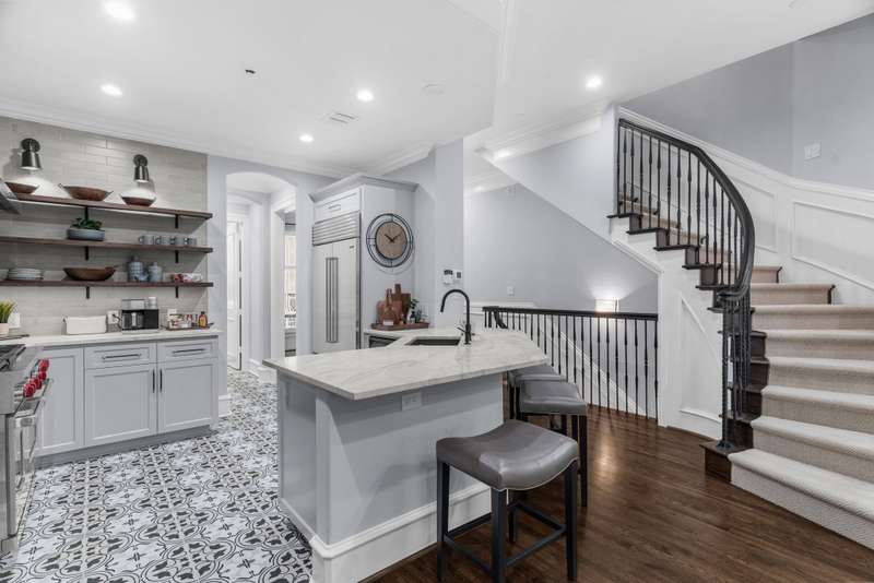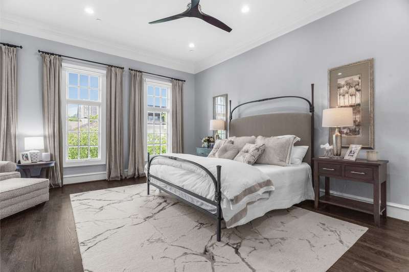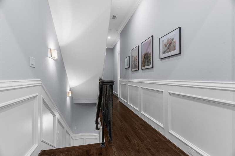 Experience sophisticated urban living in this stunning townhome blending European-style with modern luxury. Rich wood flooring flows throughout the home creating timeless ambiance while the elevator provides convenience and accessibility. The gourmet kitchen is outfitted with Sub Zero and Wolf appliances, perfect for the culinary enthusiast. Entertain family and friends in the adjoining living space with a cozy fireplace and bar area or enjoy dinner in the elegant dining area. The study offers a quiet place for work while the luxurious master retreat boasts a separate sitting area with fireplace and an updated ensuite bath with a freestanding soaking tub, walk in shower, and a large closet with stackable washer and dryer. Enjoy breathtaking city views from the fourth-floor game room balcony or the roof top terrace, complete with a bar area to host the perfect gatherings. The first floor offers a guest room with full bath as well as a separate space for home gym or a second study. NO HOA. This townhome was completely updated in 2023 with new carpet and paint, updated kitchen and baths, LED light fixtures, Hunter Douglas electric shades. Convenient to Whole Foods, Klyde Warren Park, shopping and dining.
